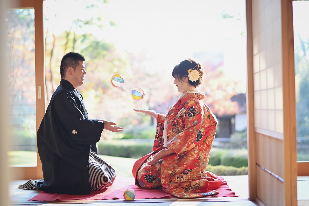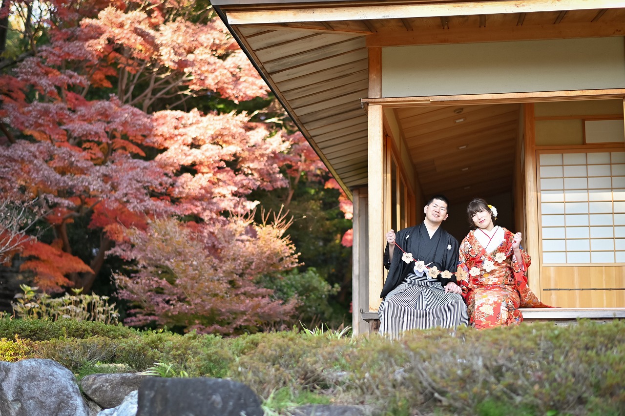 もみじも真っ赤に色付き、圧巻な景観に。宗節庵の縁側で日向ぼっこのように撮影したり、周りの風景を楽しみながらお散歩のようにナチュラルな撮影をしたりと楽しい時間を過ごさせて頂けました。