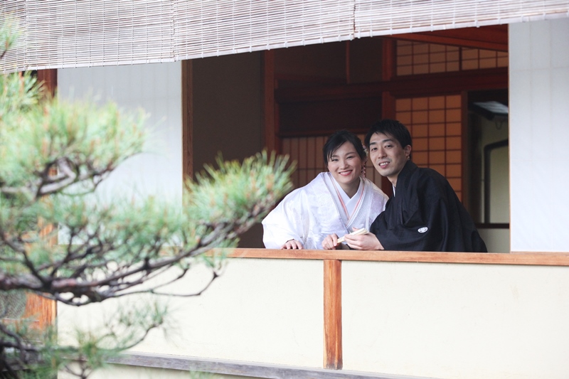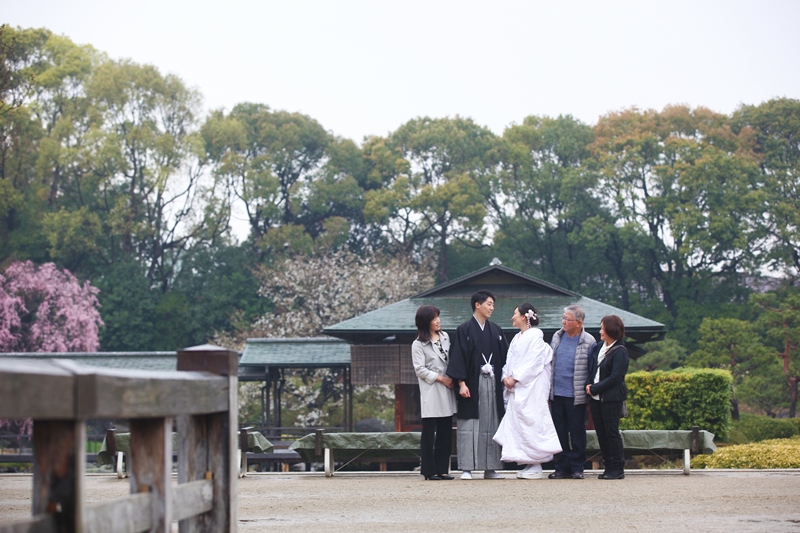 桜も美しくピンクの花を咲かせ、新婦様のほんのりピンク色が入った白無垢ととてもマッチしていますね!