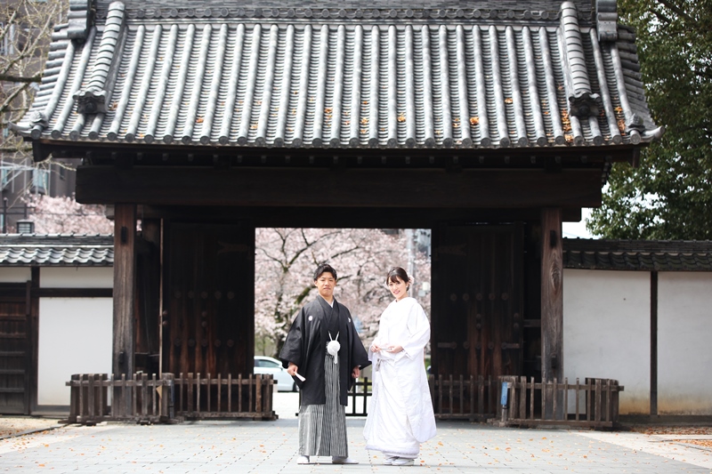 桜で撮りたい!という強いお気持ち、願いが伝わって、この最高のロケーションが叶ったんですね。和装姿が絵になるお二人。