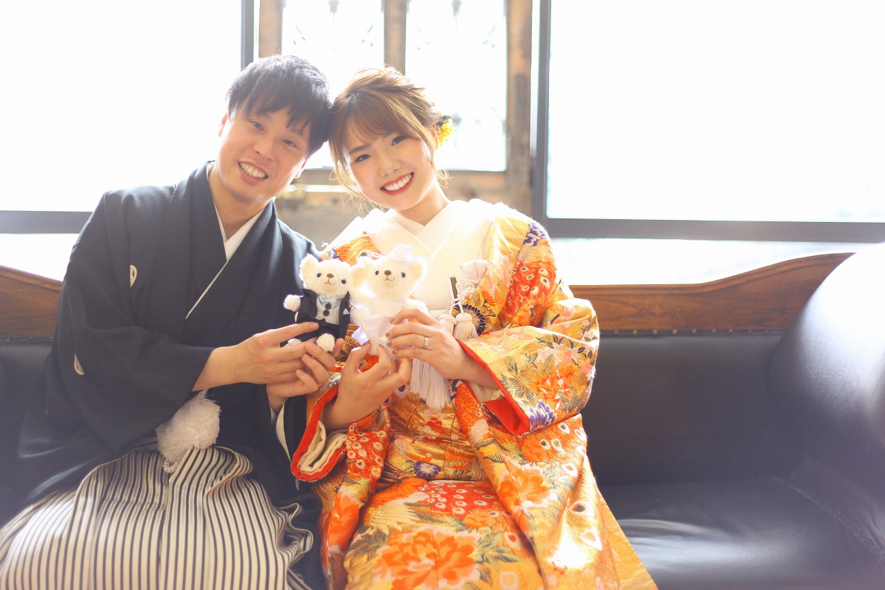 大事な家族の猫ちゃん、うさぎちゃんと一緒に和装撮影。