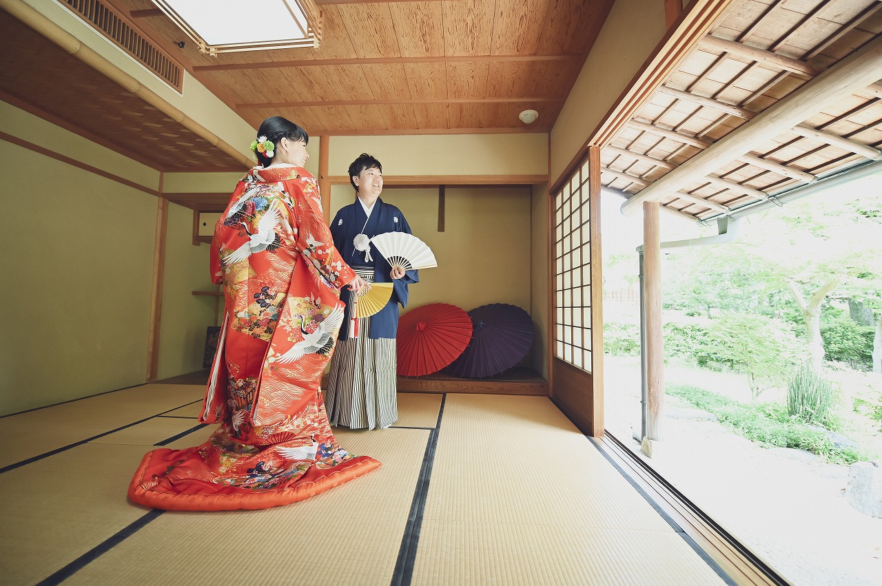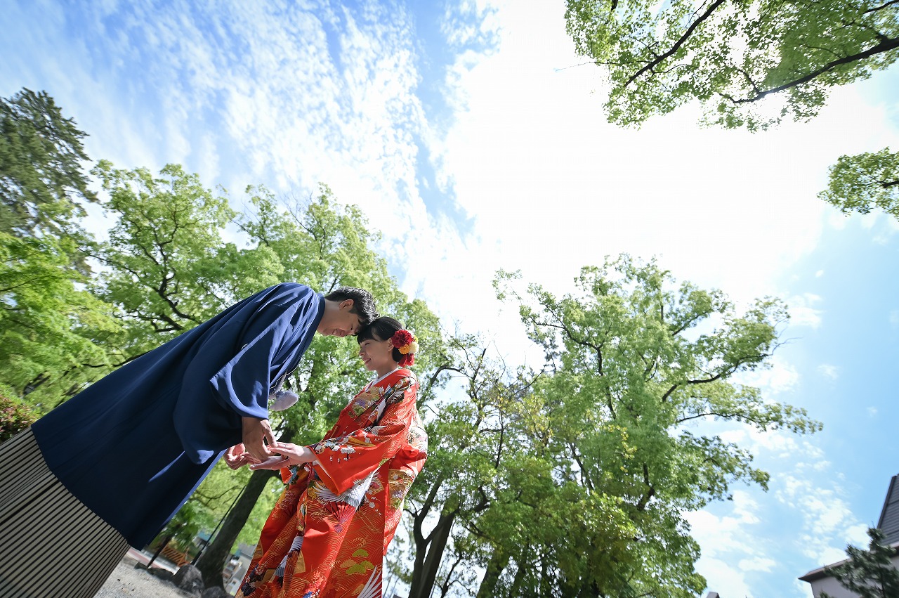 緑に囲まれお二人だけの空間でロケーション和装フォト。 | 名古屋の前撮り&フォトウェディング【公式】WEDDING AVENUE
