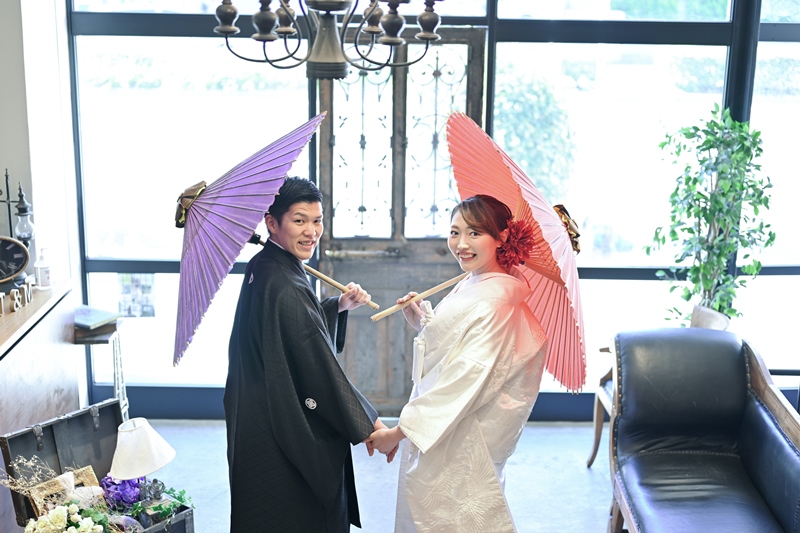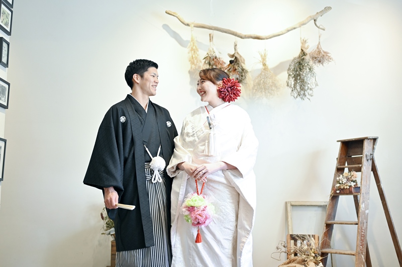 オシャレなスタジオで和モダンなウェディングフォト