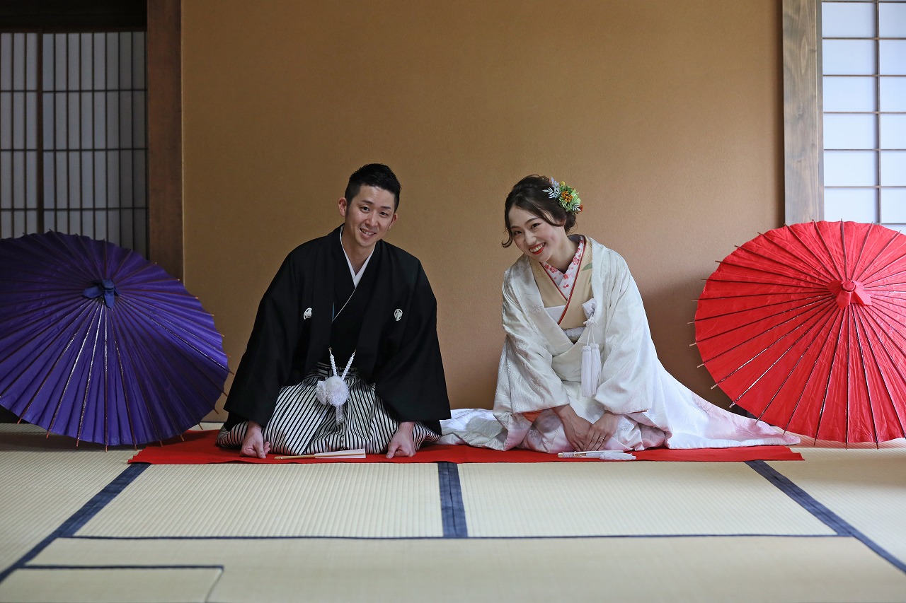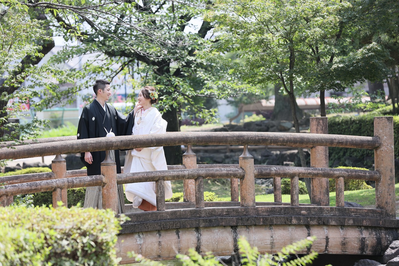 風情溢れる日本庭園でお二人らしくロケーション和装フォト。