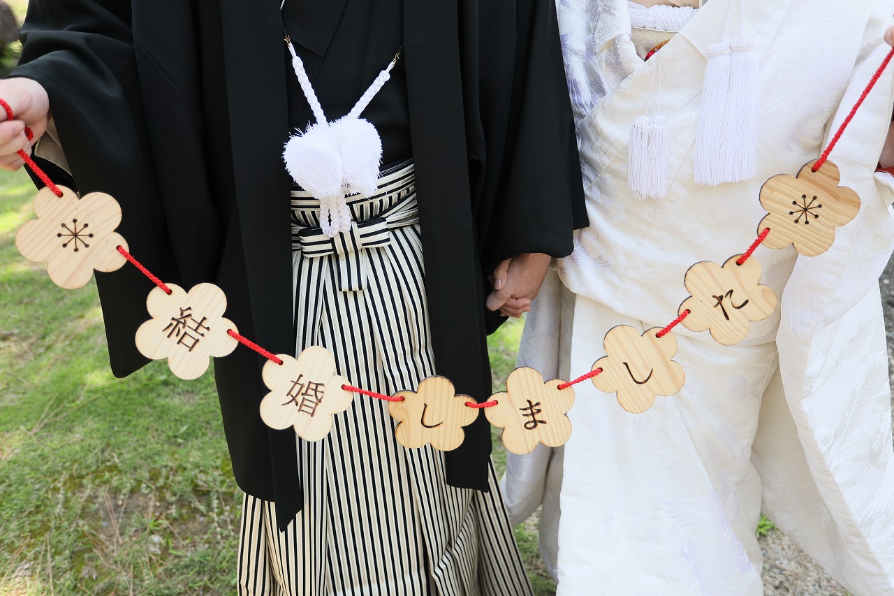 ご新郎様の黒の紋付もかっこよく決まっていますね!!また、当初は桜での撮影がご希望でしたがコロナで延期になってしまいましたが