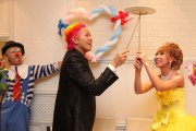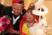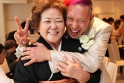 - とにかく明るく楽しい式にしたかったので、新郎の頭をレインボーカラーにしました。 会場の花等も全てレインボーにしてもらいました。 入場はおもちゃのギターを持って入場する等、笑が多くあるようにしました。