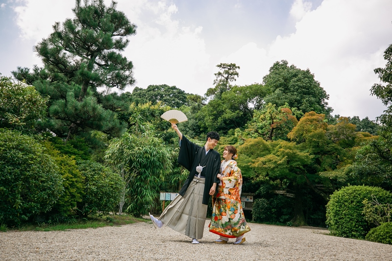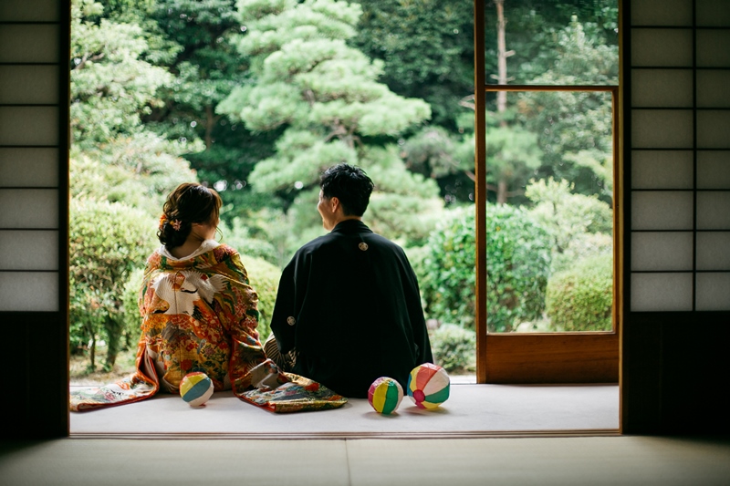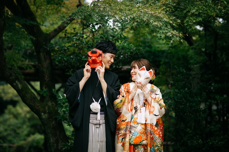 色打掛も色鮮やかな緑に映えてとっても綺麗でお似合いですね。