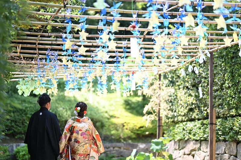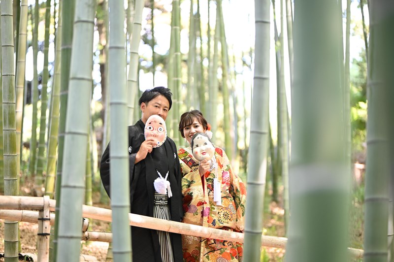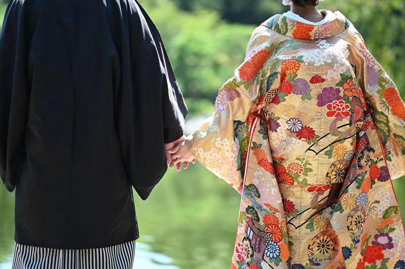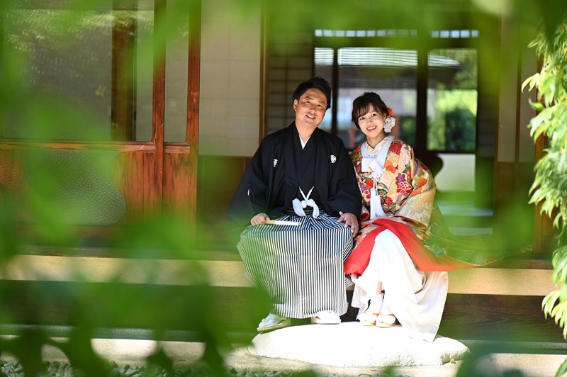 ご新郎様の黒の紋付とばっちり合っていますね♡これからも末永くお幸せに♡