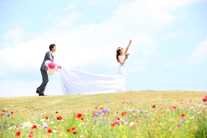 新舞子は芝生もあり、5月はスイートピーがとても色鮮やかに咲いていて、海だけではなく色々なお写真を残して頂けました☆