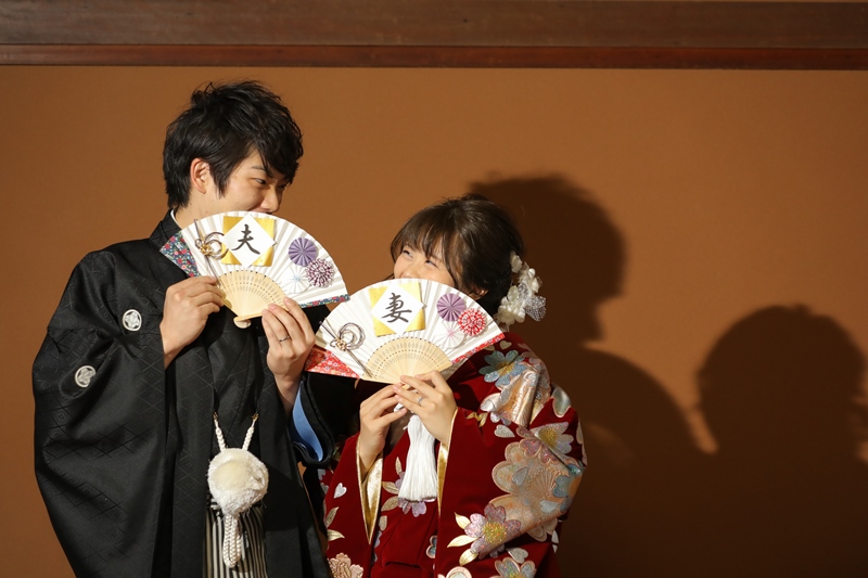 ご新郎様も黒の紋付でクールに決まっていますね!!