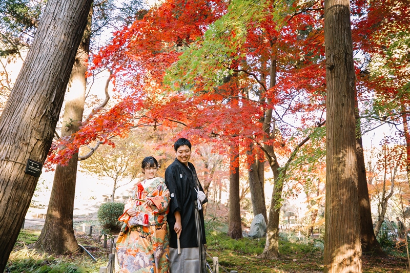 当日は誰もが見惚れるくらいの綺麗な赤色に色付いた紅葉の中での撮影でしたね☆彡