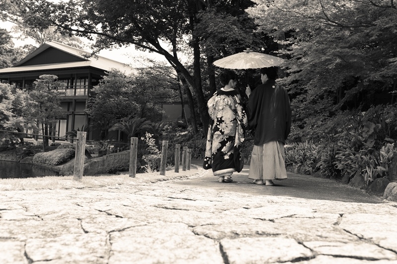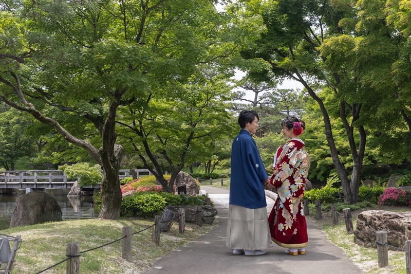 イメージにぴったりの時期に徳川園での撮影をしていただく事ができ、