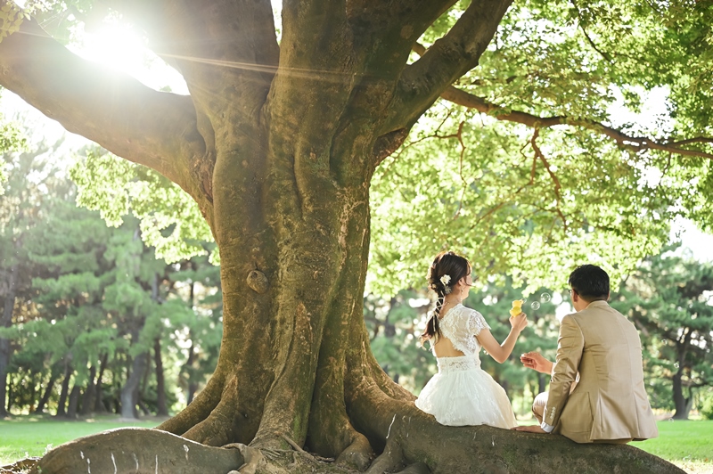 温かいい光に包まれた幸せなフォトウェディング