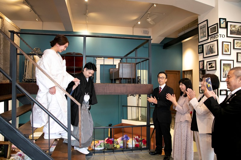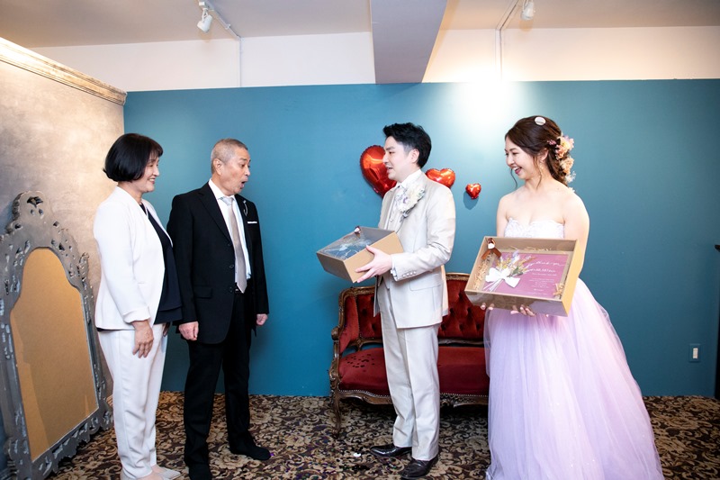 スタジオは洋風ですが、赤の敷物や傘をうまく使い、和の雰囲気になっていて驚きました。両家の両親も入れて撮ってくださってよかったです。