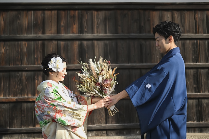 とても自然な雰囲気で素敵です✨お揃いの撮影アイテムや、和装にドライフラワーなど、