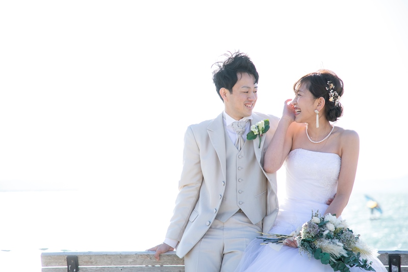 ワン☆彡ダフルな3人でのビーチフォト☺ | 名古屋の前撮り&フォトウェディング【公式】WEDDING AVENUE