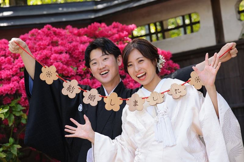 お庭の季節の花々や新緑をバックにした撮影で白無垢がとても映えていて素敵でした~(^^)/ぜひ、ご家族にも見せてあげてくださいね☆彡