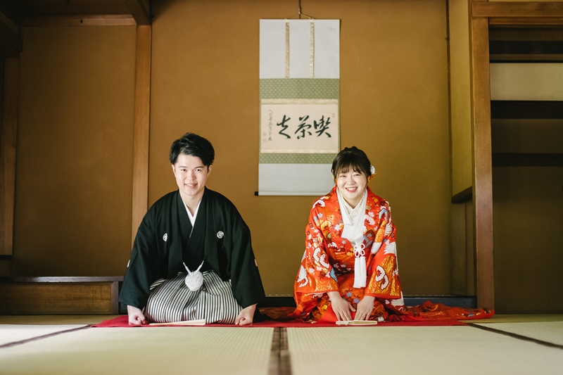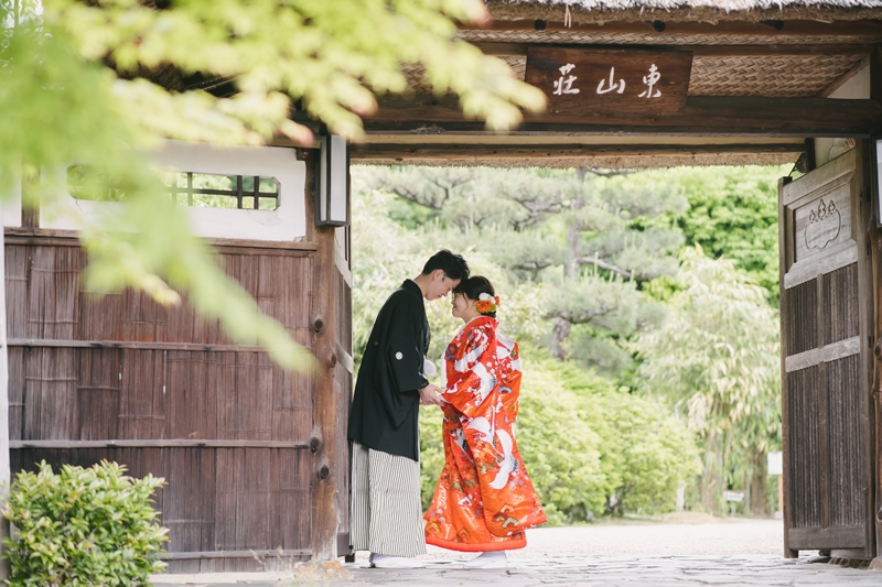 和装撮影もお2人とも色打掛と紋付がとてもお似合いで、東山荘にもぴったりでした(^^)/お住まいも遠いので、お友達とは被らないような、お写真が撮れたのではないでしょうか?!!