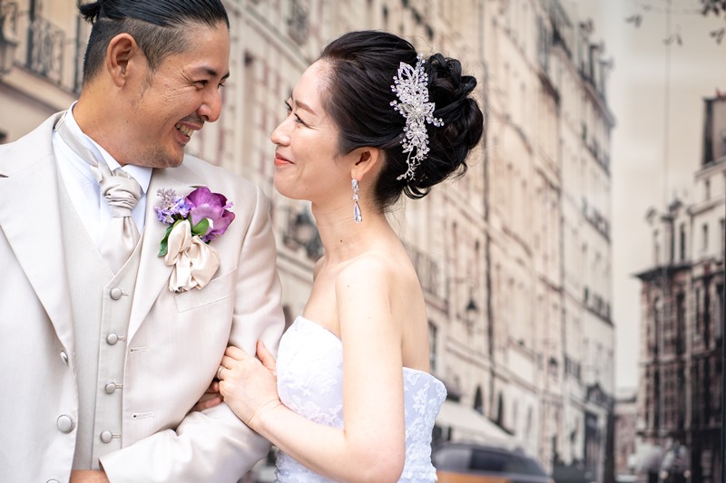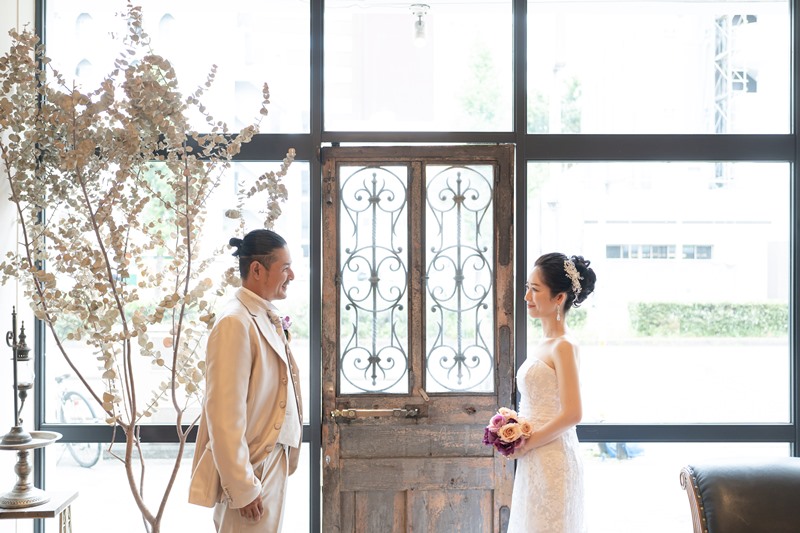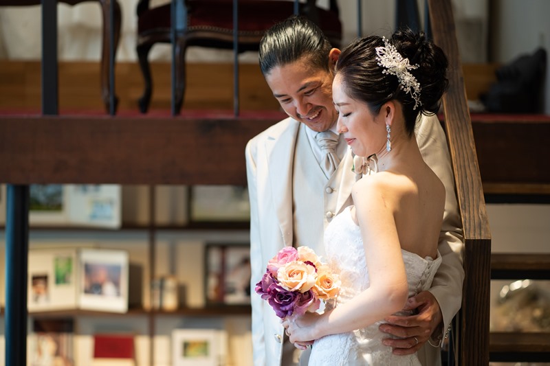 洋装は店舗での撮影でしたが、天候に左右されることなく沢山の色んなカットで素敵な写真を撮っていただきました。写真が苦手な二人で、最初は緊張していましたが、自然と笑顔になるような雰囲気つくりをしていただき感謝をしております。