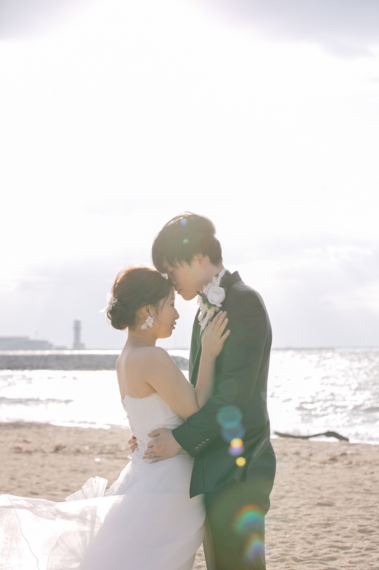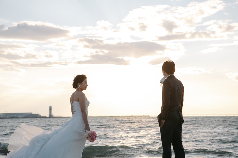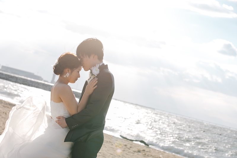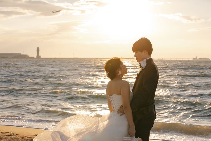 良かった点を教えてください - 洋装でりんくうビーチでのロケーション撮影をしました。当日、海での撮影を始めましたが強風のため表情の映る写真が上手く撮れず、急遽、スタジオでも撮影していただきました。