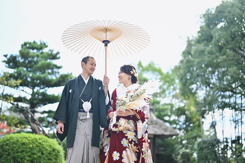 天気も良くボルドー色の着物が映える撮影になりいい思い出になりました。 - REASON ウェディングアベニューで撮影されたきっかけ、