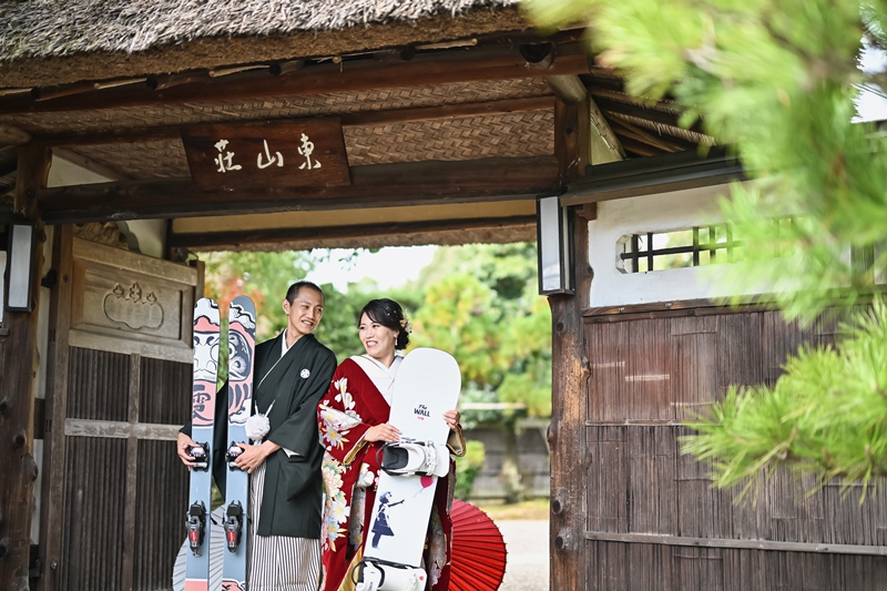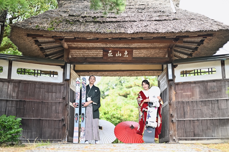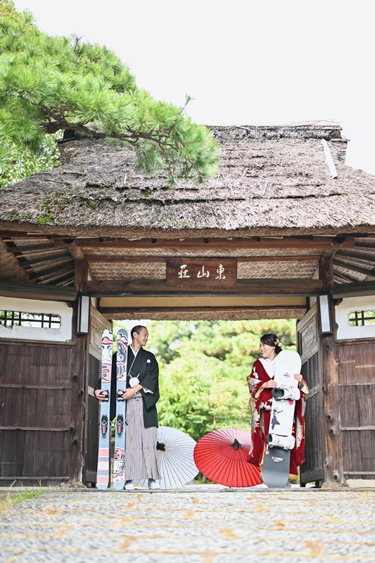 和装で紅葉をバックに自分達の趣味であるスキー・スノーボードを入れたカットはどうしても残したい写真だったので、その目的が叶えられてとても満足できました。