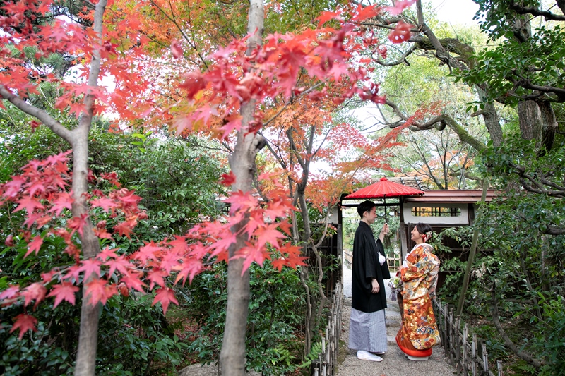 和装で必ず紅葉と取っていただきたかったので、天気にも恵まれ、紅葉にも間に合い、素敵な写真をたくさん取っていただけて、とても大満足です!