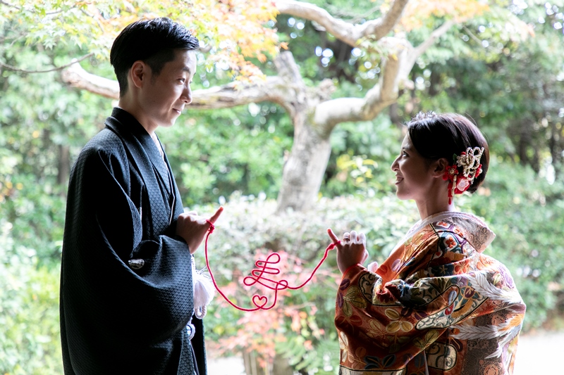赤い糸♡紅葉も美しくお2人をお祝い☺✨