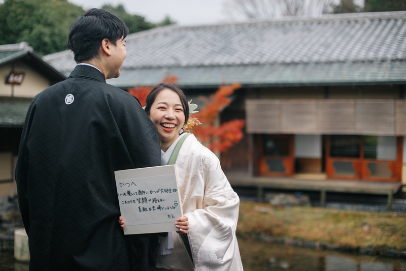 また、白無垢はこだわりの色掛下でとってもお似合いのコーディネートで、ブーケもぴったりでしたね♪お写真にもあるようにお互いへの気持ち、撮影した時の気持ちを忘れないで末永くお幸せに~♡♡