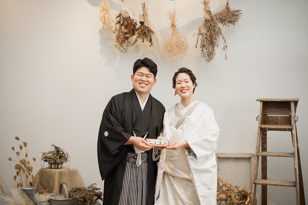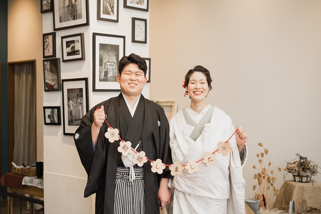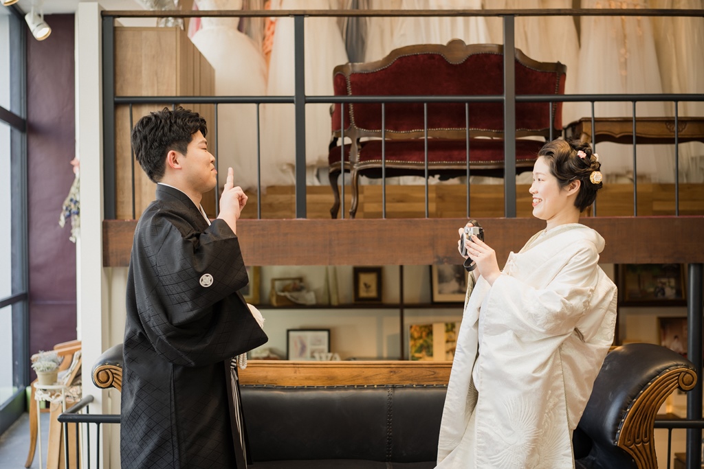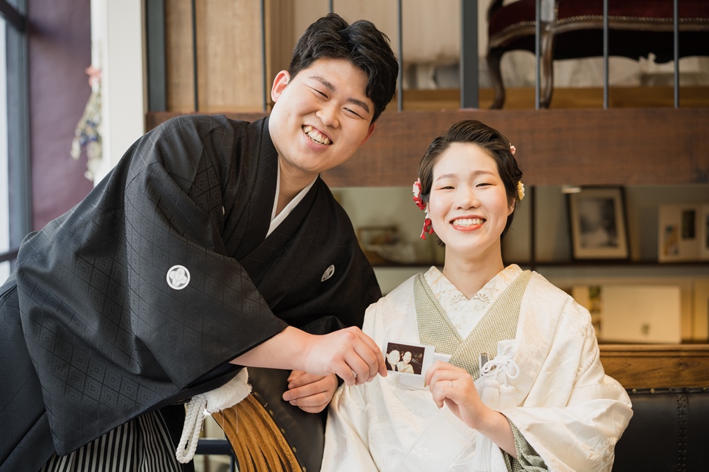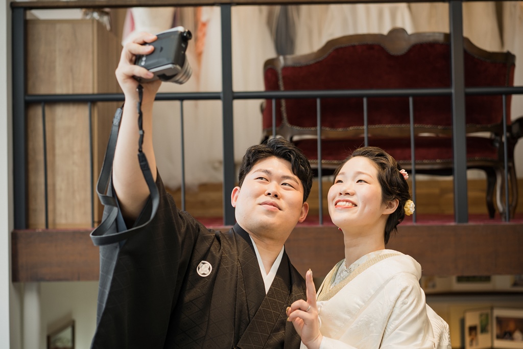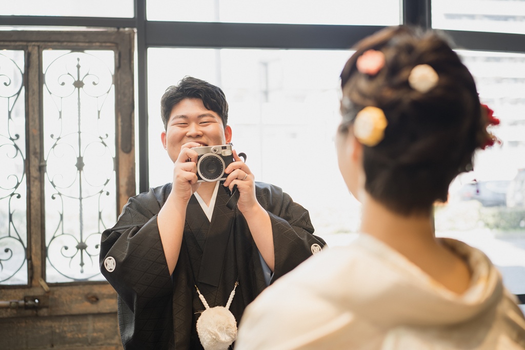 ご持参されたチェキで撮ったお写真も、フォトウェディングでの想い出の一品になりましたね彡白無垢をお召しになられたご新婦様の透明感あるお姿、紋付をお召しになられたご新郎様の凛々しいお姿、