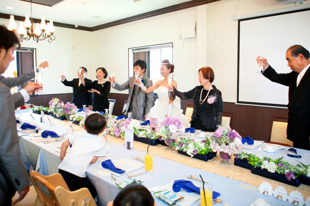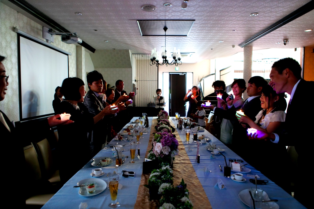 - みんなに喜んでもらいたいので、まず料理。 スペイン料理は試食でとても美味しくて、選んで良かった。 みんなが「家族」を感じれるように、弟や妹、いとこの結婚式の写真をスライドにしたらとても盛り上がって良かった。