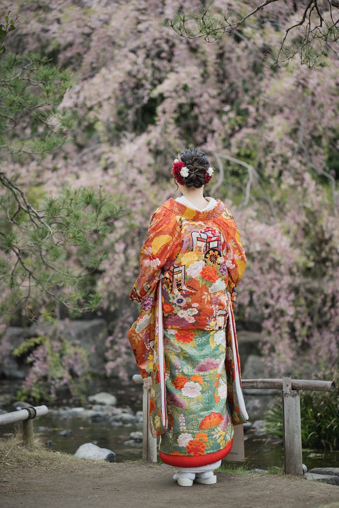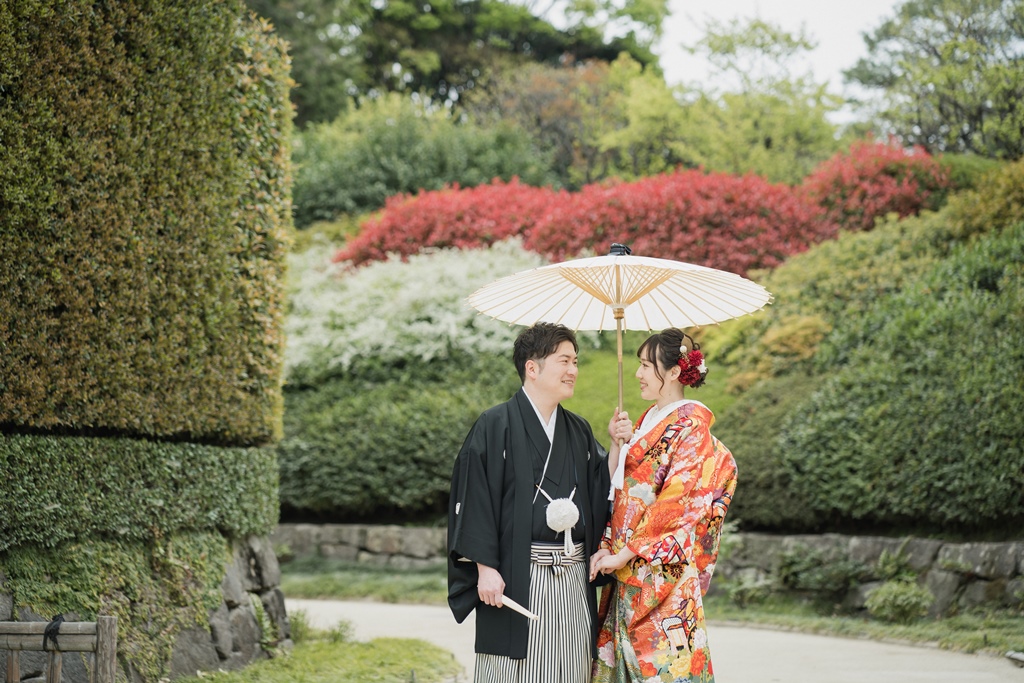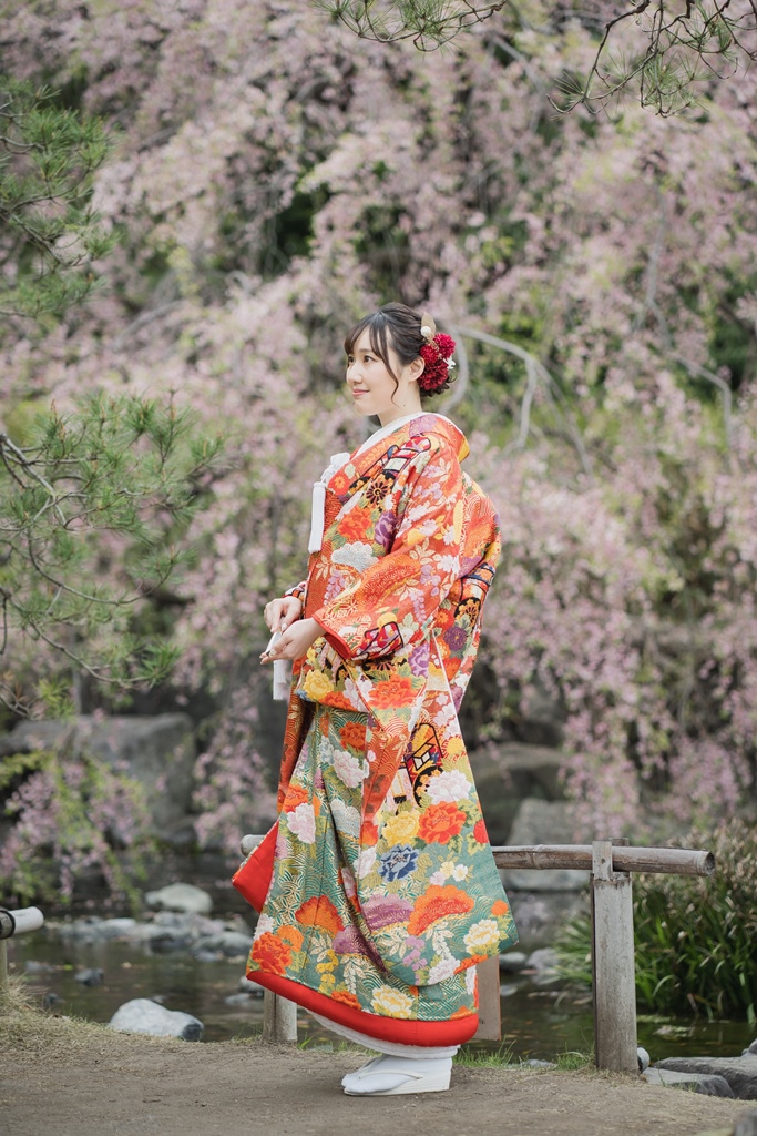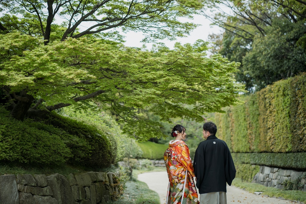和装は近隣の庭園に赴いての撮影でしたが、不慣れで緊張するかと思いましたが、担当して頂いたスタッフの方々がとても楽しく声をかけて下さり、終始楽しく撮影を進めることが出来ました。