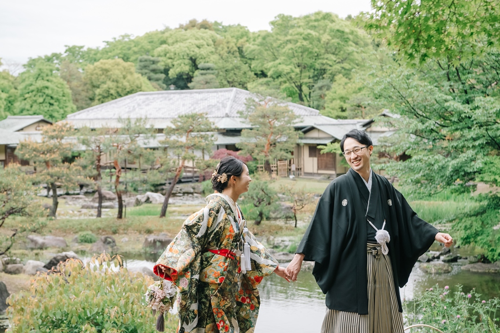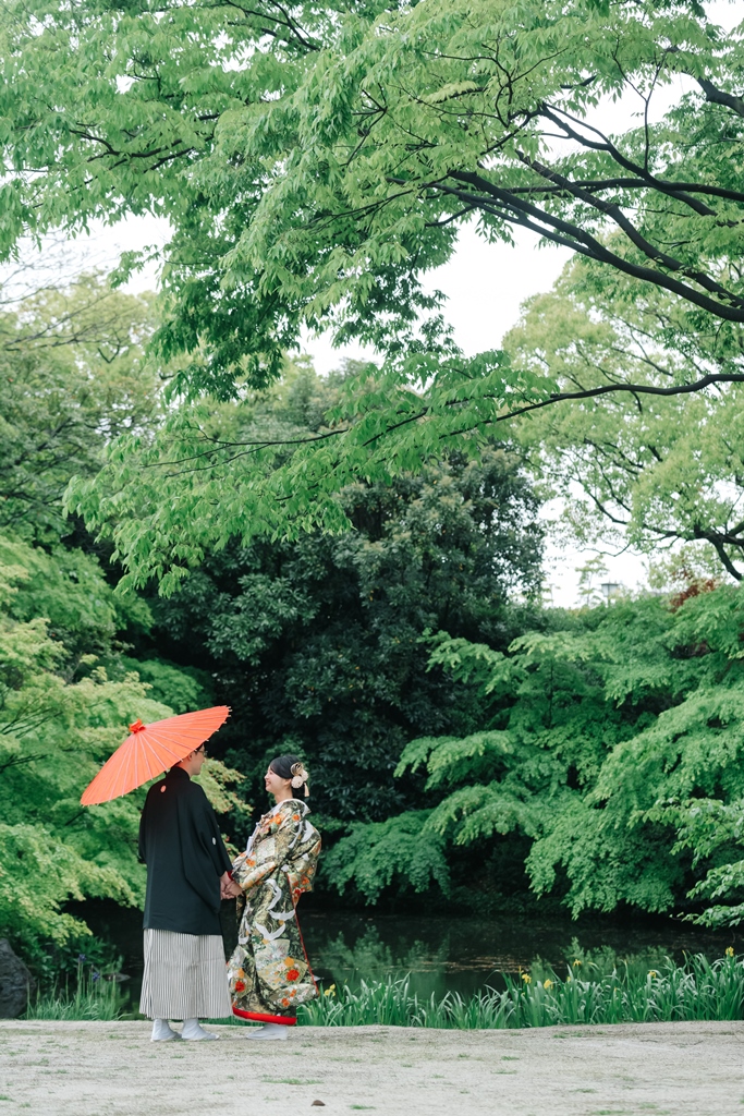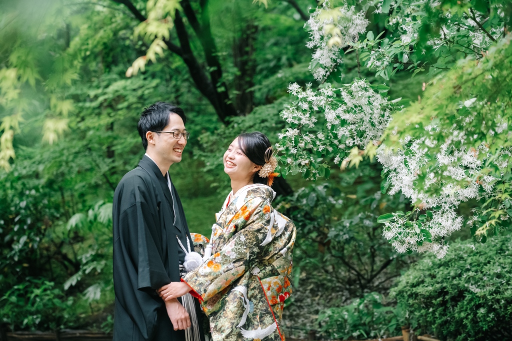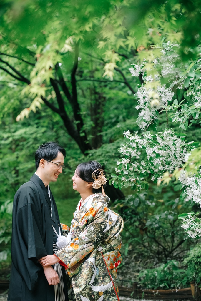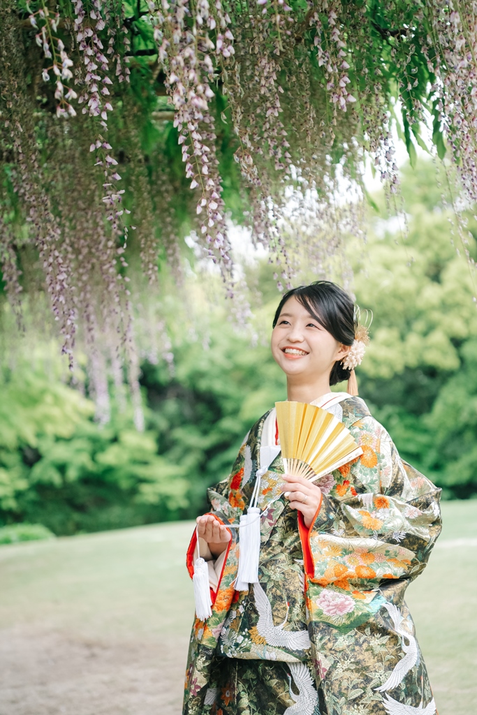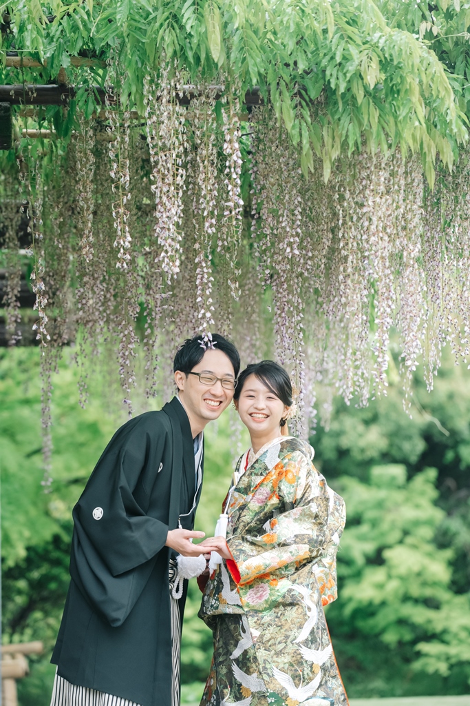 大人気の白鳥庭園で、季節の「藤の花」も一緒にフォトウェディング♡