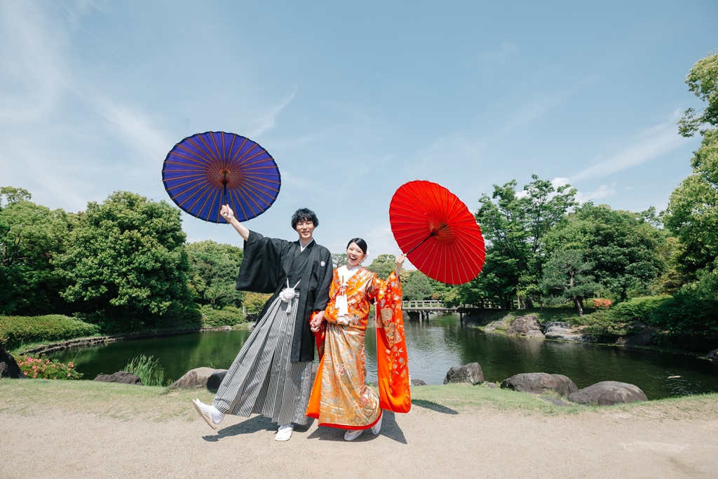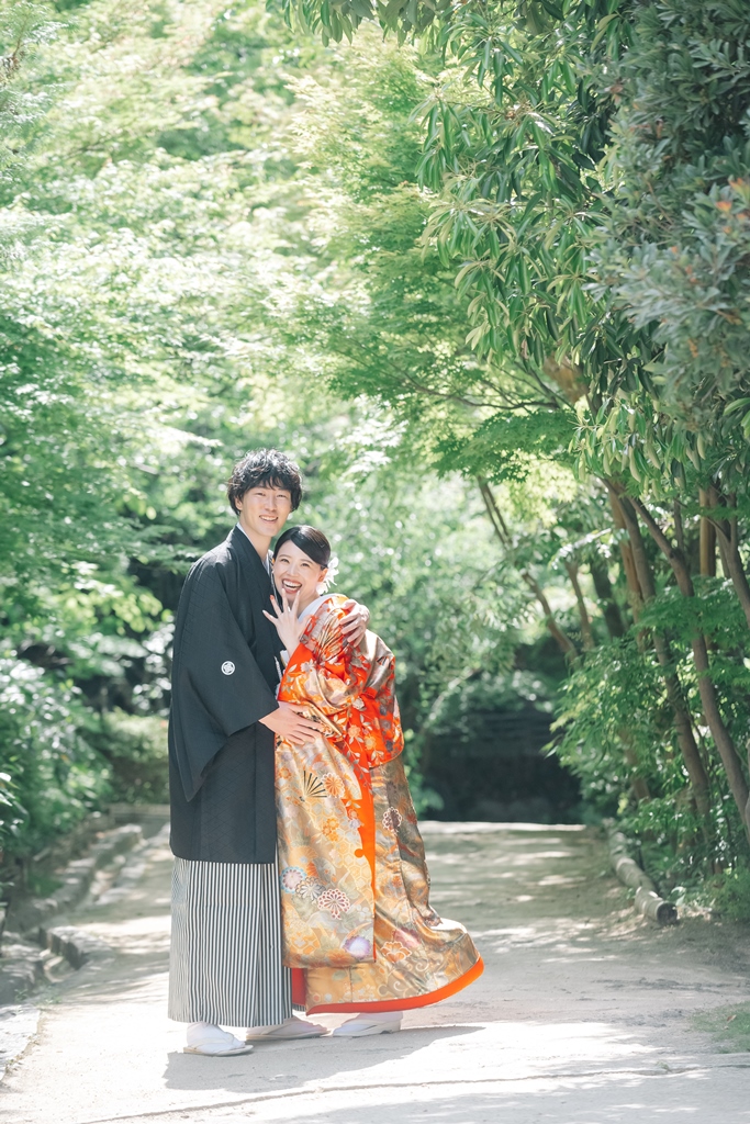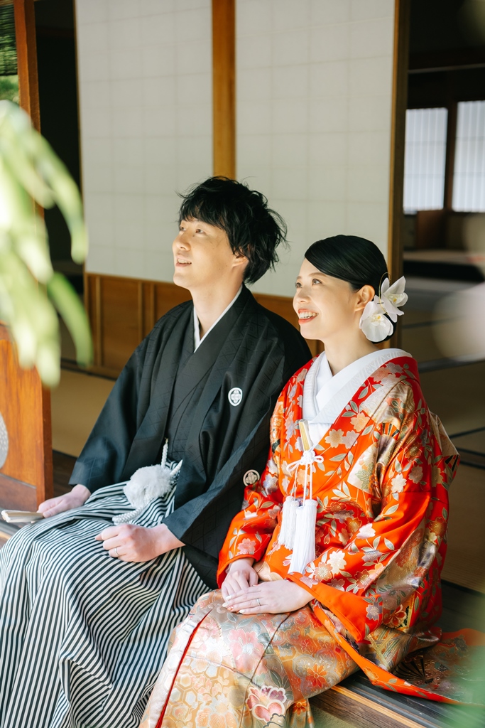 普段着ることのない和装で、慣れない撮影でしたね、、撮影には、徐々に慣れてきて、自然体で楽しそうにしているお二人がとても素敵でした♡