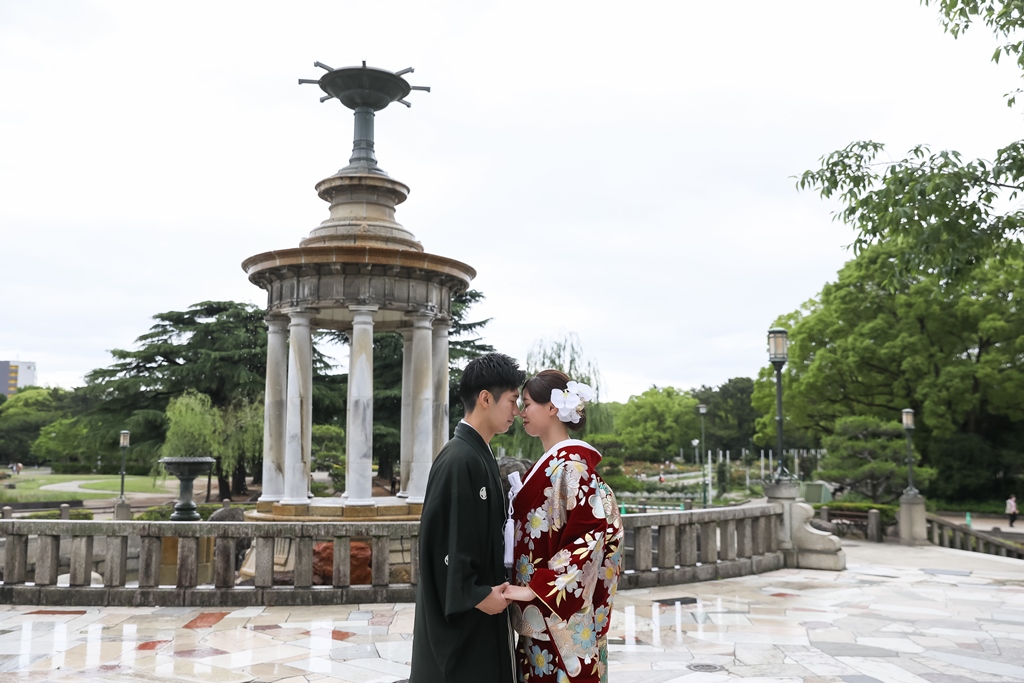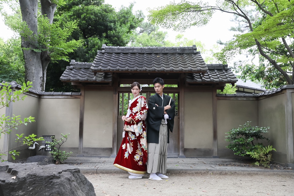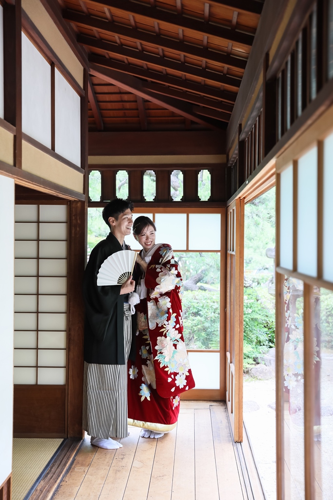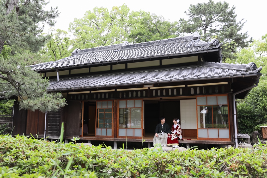 和装でも洋装でも大人気!和洋折衷の公園にあるお茶室「鶴々亭」で前撮り♪