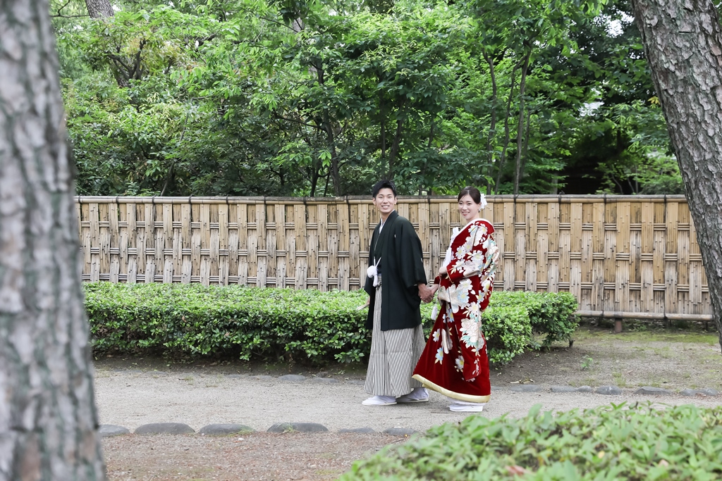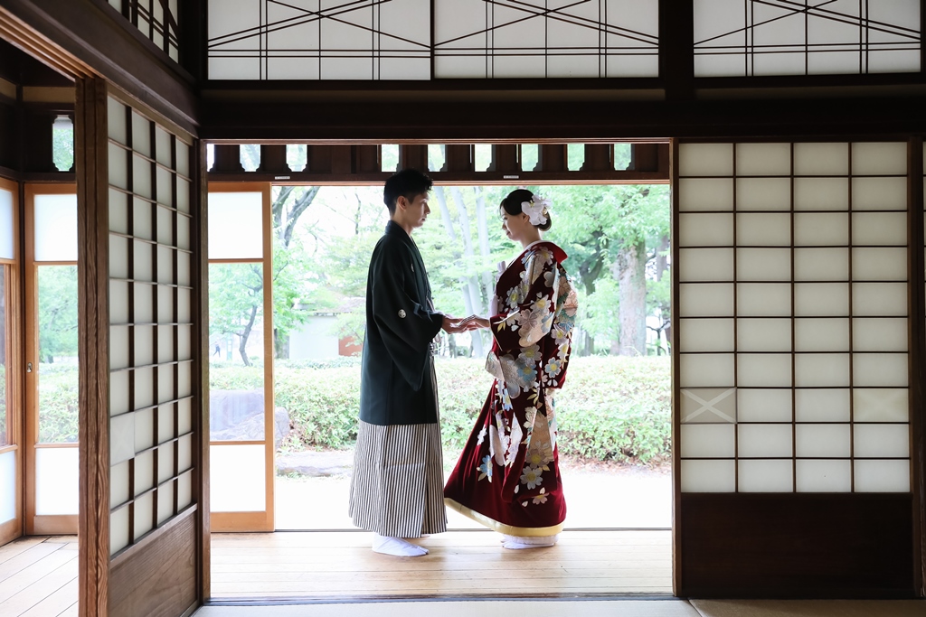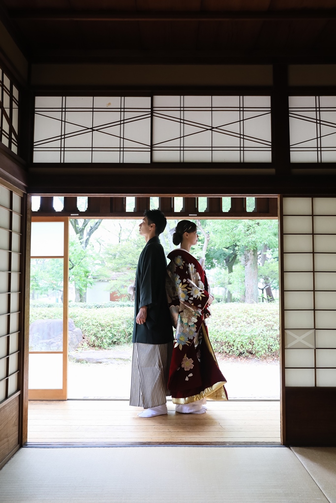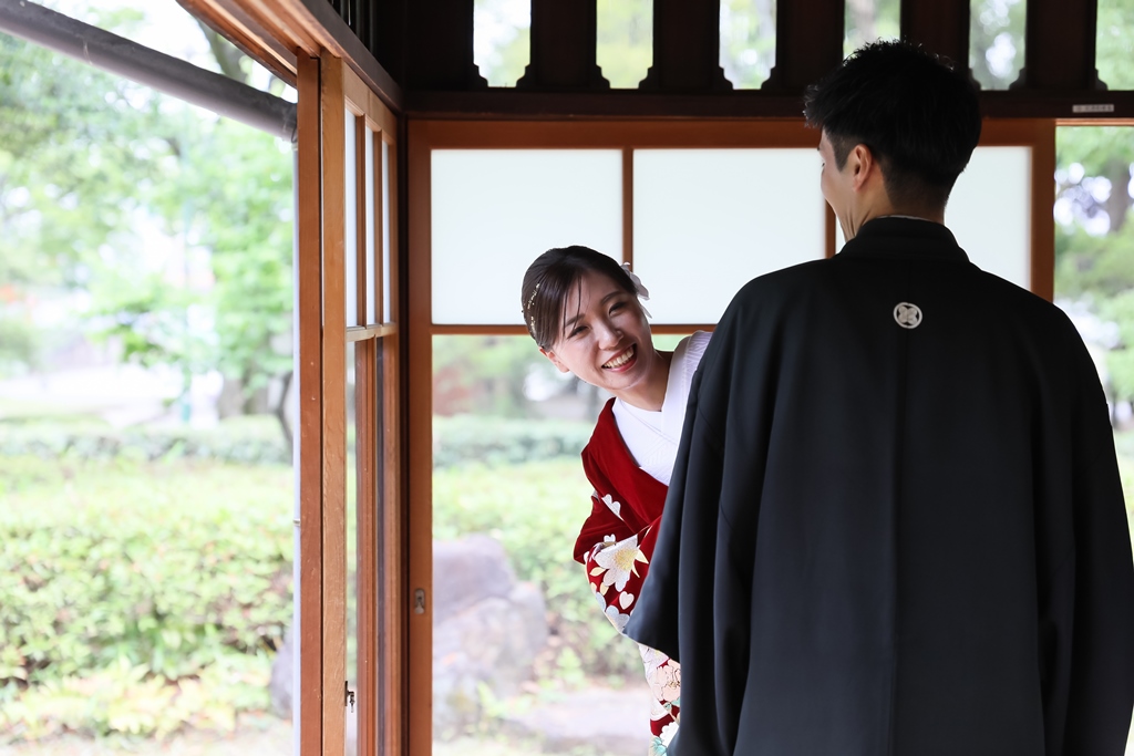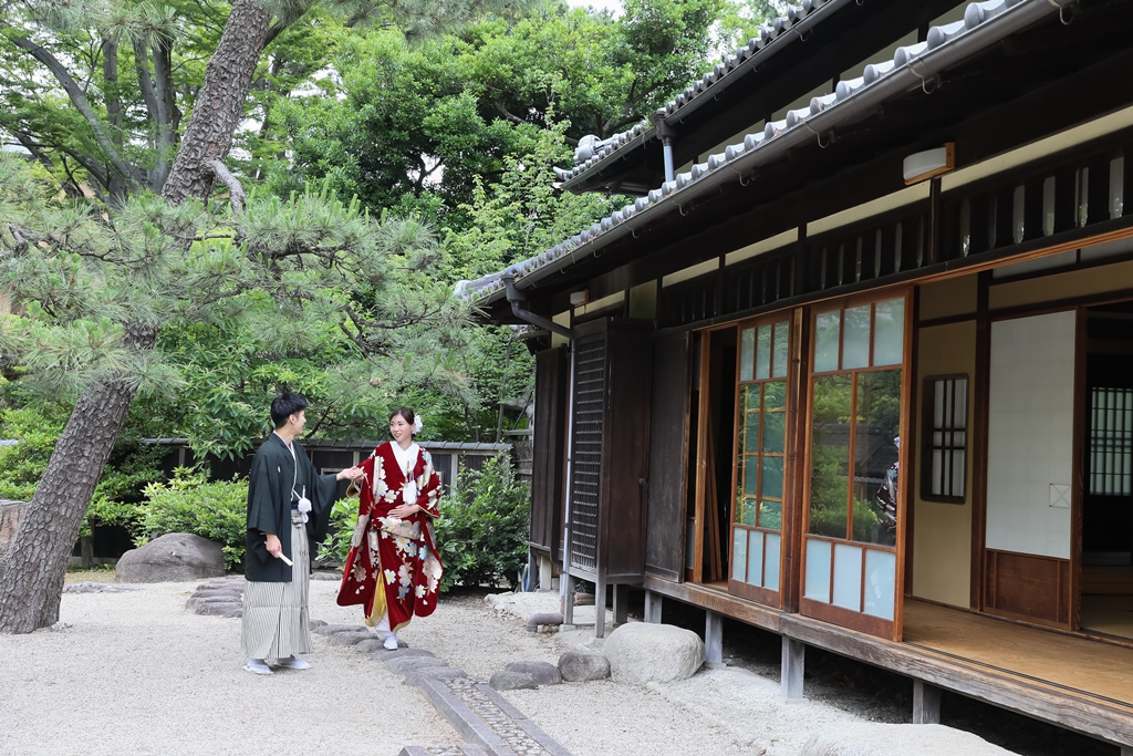 和装でも洋装でも大人気!和洋折衷の公園にあるお茶室「鶴々亭」で前撮り♪