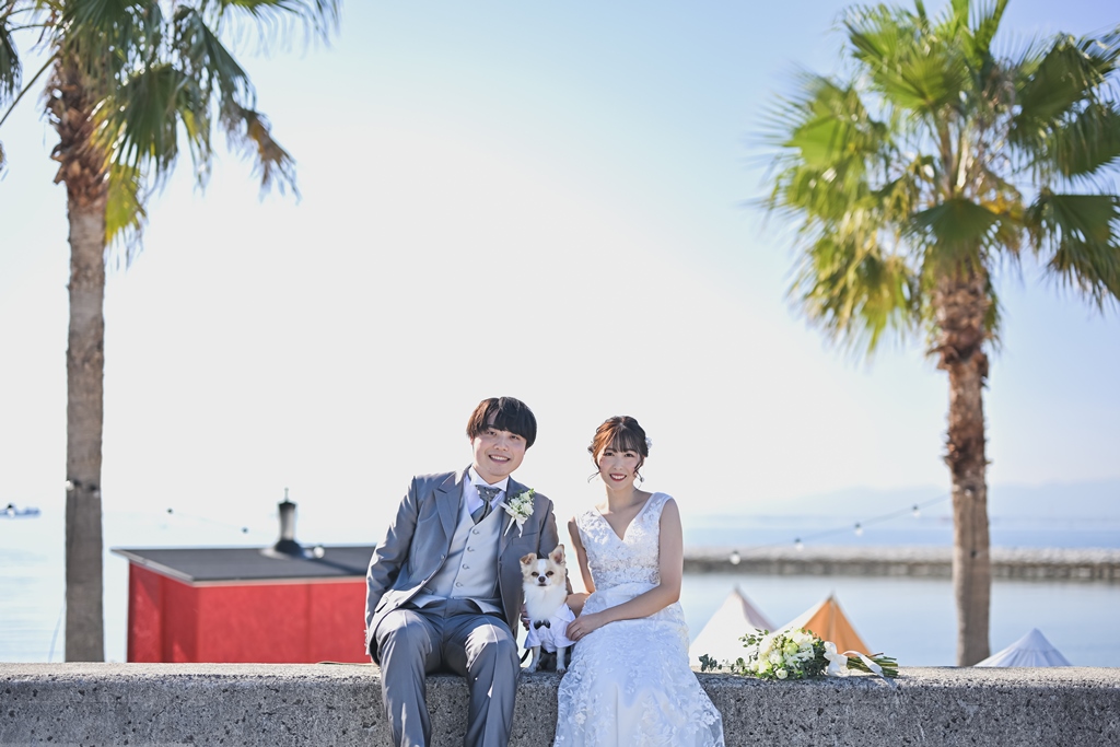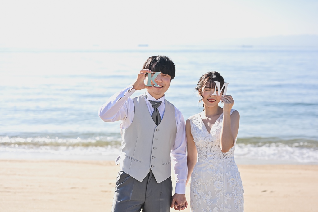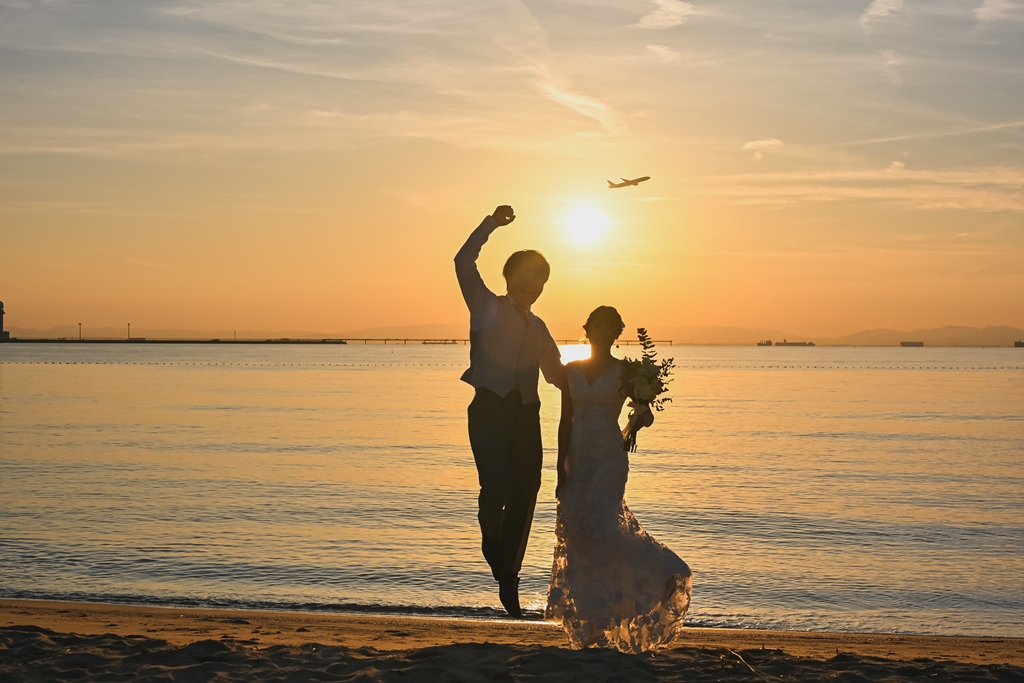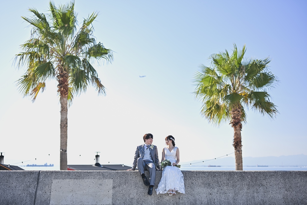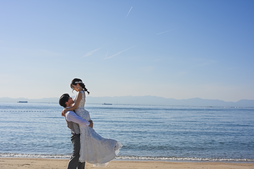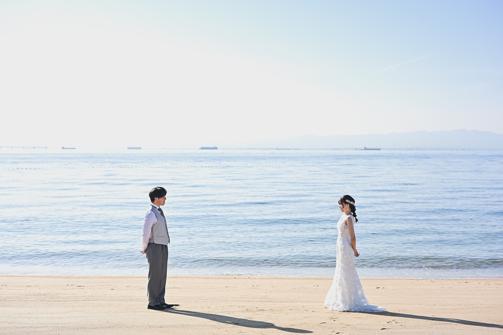 りんくうビーチと東山荘での撮影、お疲れ様でした。洋装も和装も素敵なお写真ばかりでどのお写真を掲載しようか悩みました!