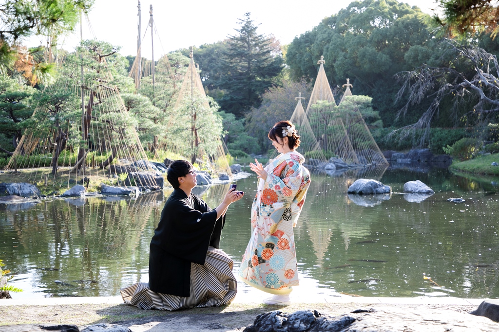白鳥庭園で和装ロケーション撮影お疲れ様でした!!前日まで不安なお天気模様の中でしたが、当日はバッチリ晴れて素敵な撮影になりましたね!