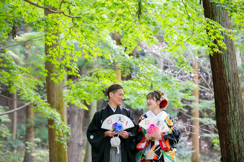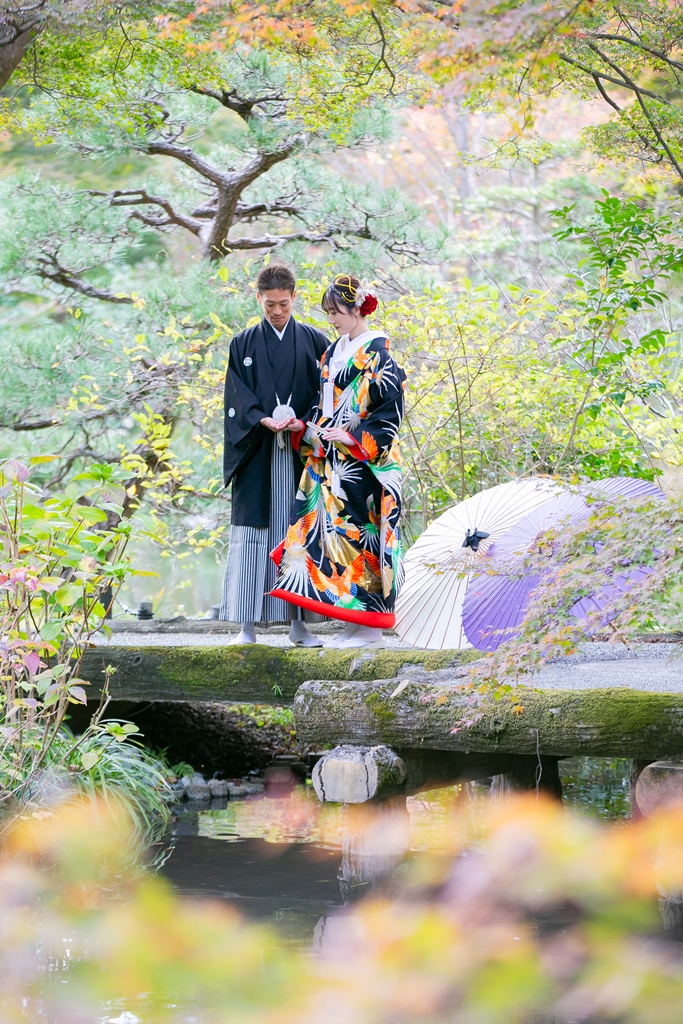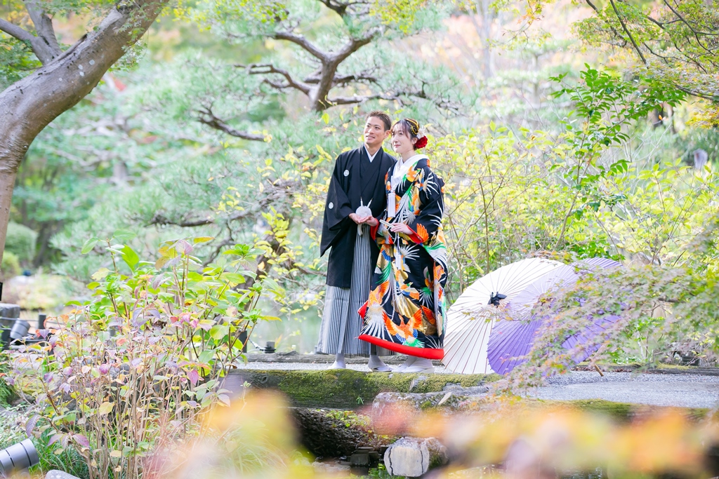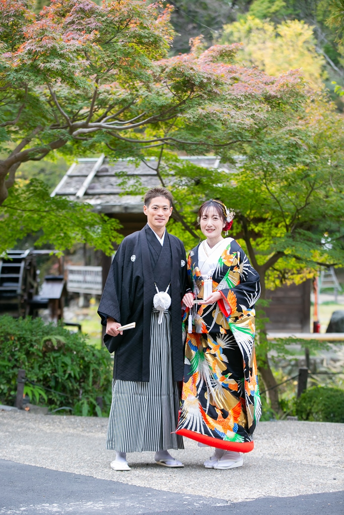 赤・黄・緑が織りなす秋景色!幸せいっぱいの和装フォト♡