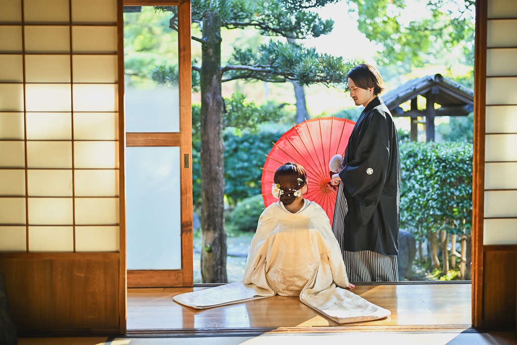 赤く染まった世界に、透明感ある白無垢と凛とした紋服の映える撮影になりましたね☆彡