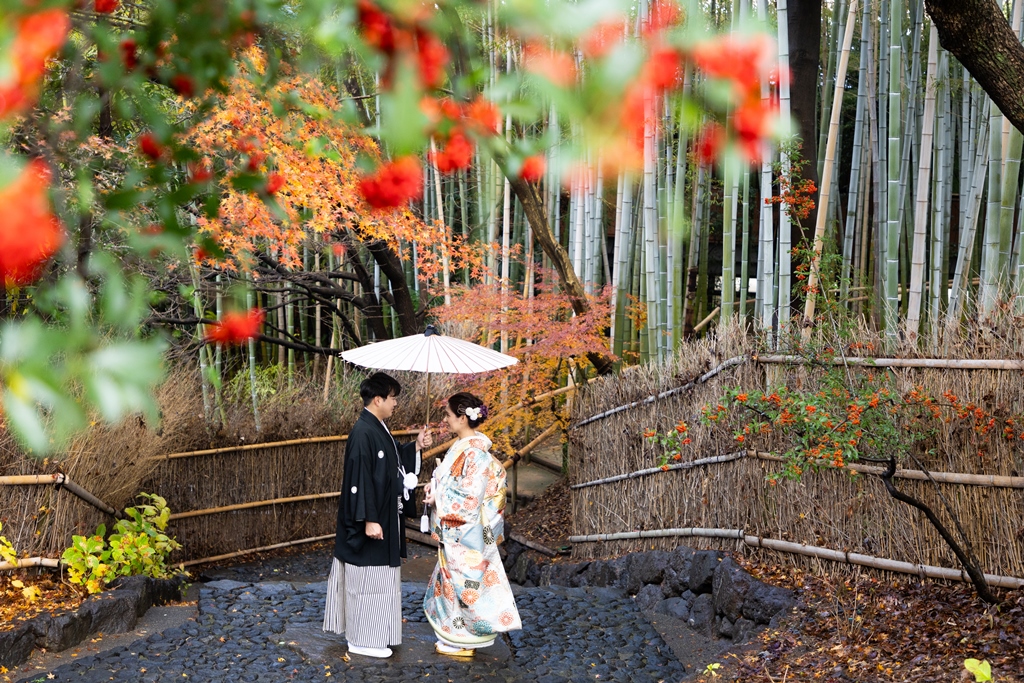 また、ロケーションフォトの中に、希望する白鳥庭園もあり、秋の紅葉とも共に撮影できるとのことで、非常に興味があった。