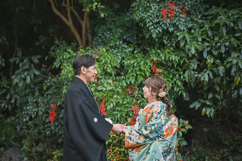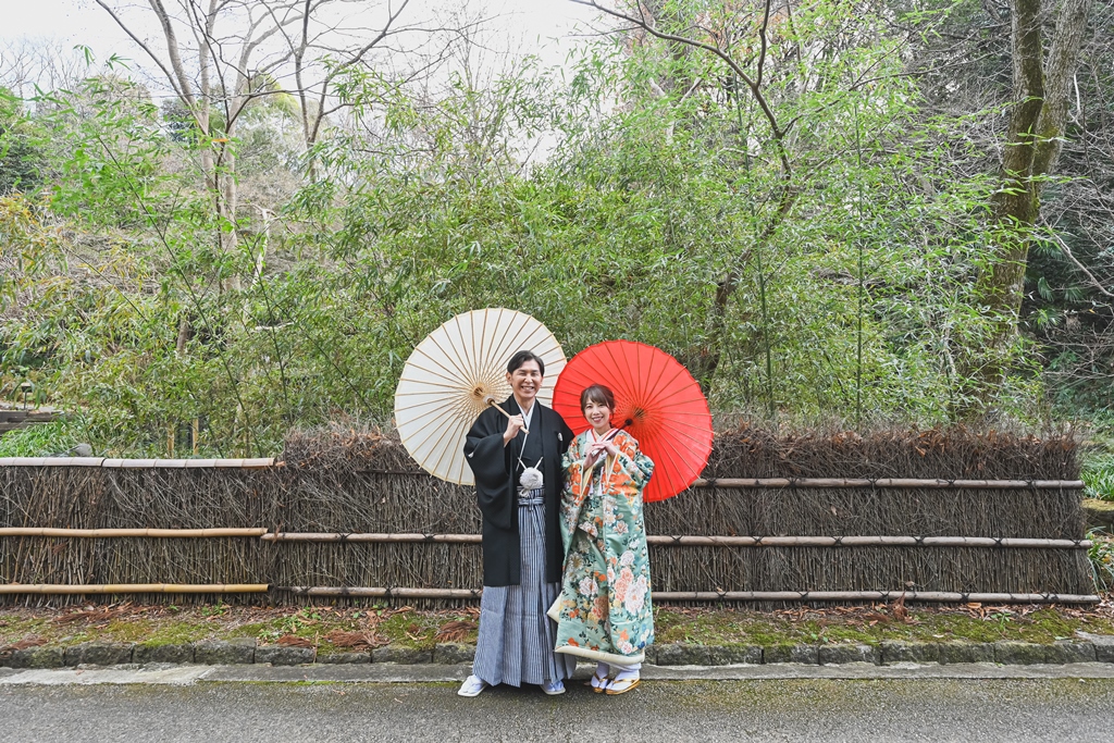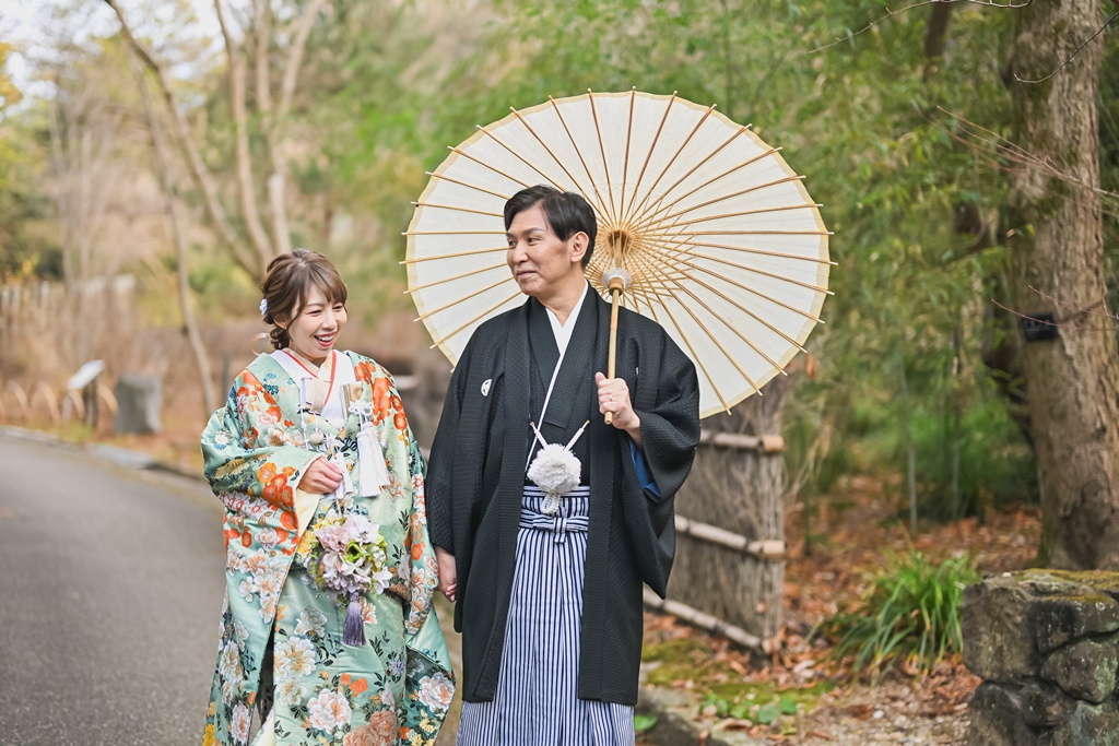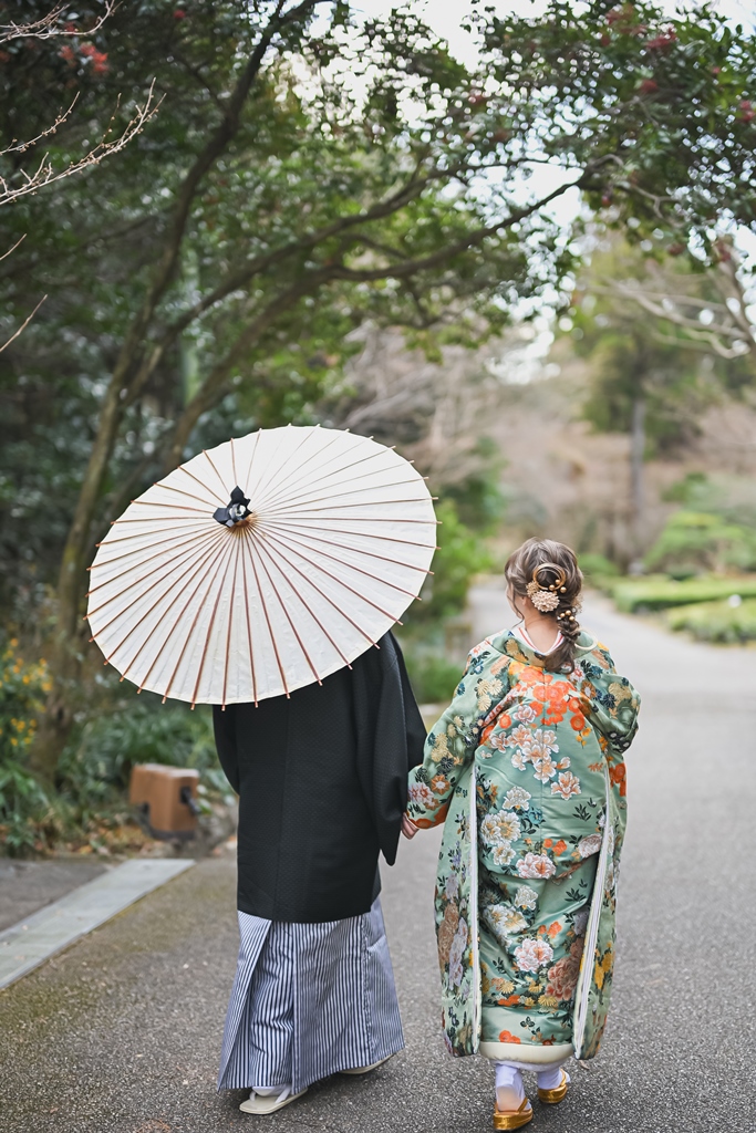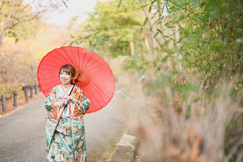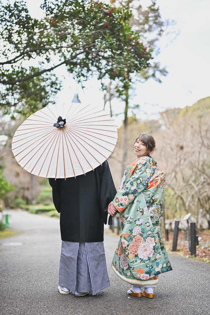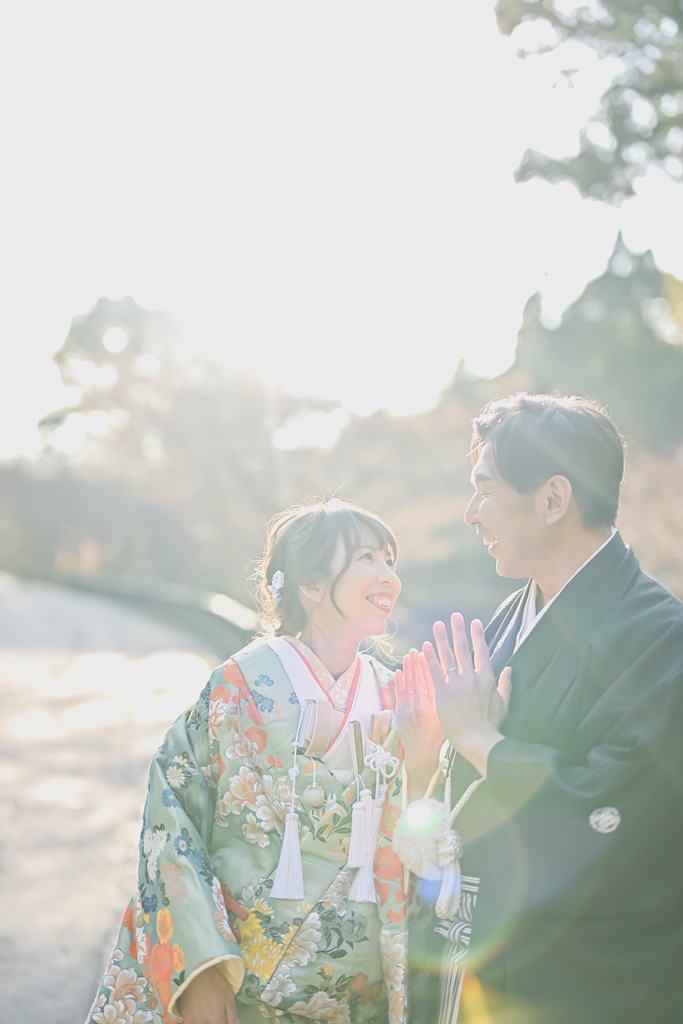 洋装スタジオ撮影(2着)和装ロケーション撮影(2着)でしたが、ロケーションも天気が良く穏やかな日で気持ちよかったです。
