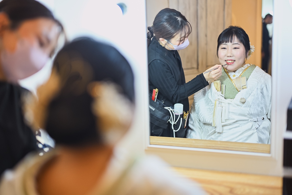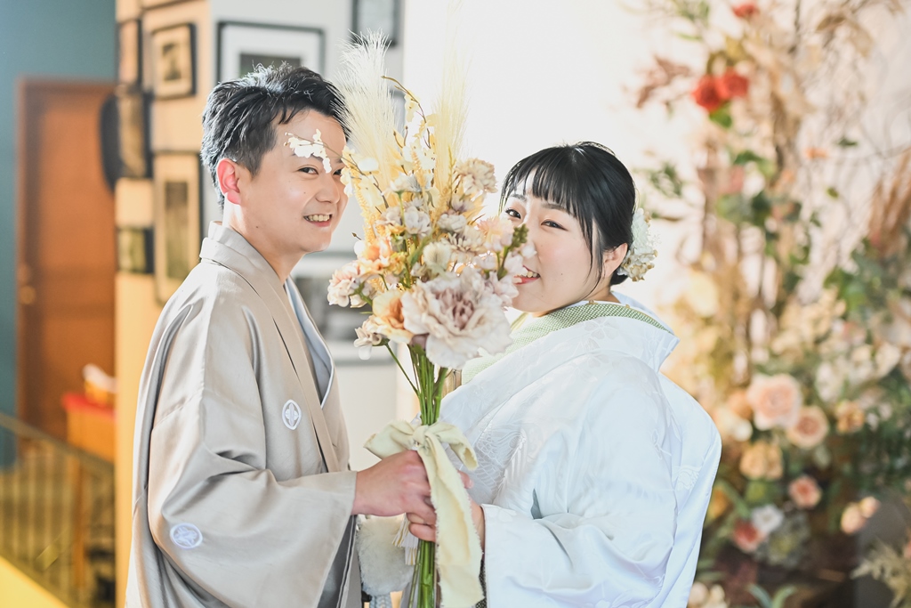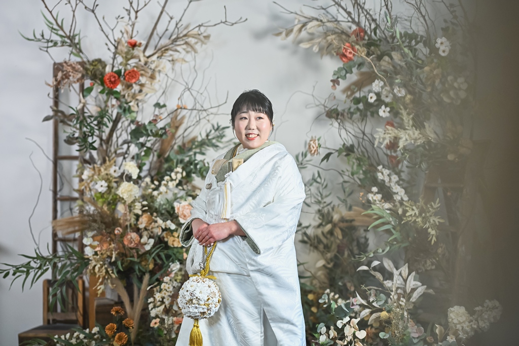 洋装1点と和装2点にて撮影をお願いしておりましたが、着替えやすい、撮影しやすい順番の撮影方法などを教えていただきスムーズに撮影が出来ました。白無垢では長時間の撮影が辛くないよう調整してくださったり、常に寄り添ってくださったので安心して撮影が出来ました。