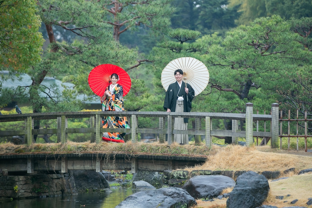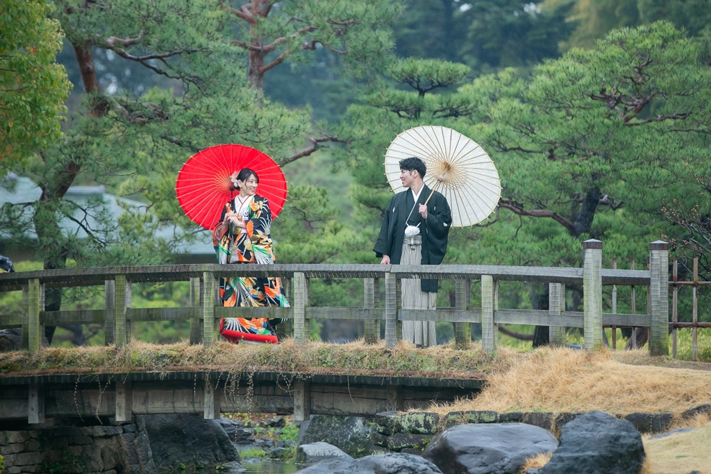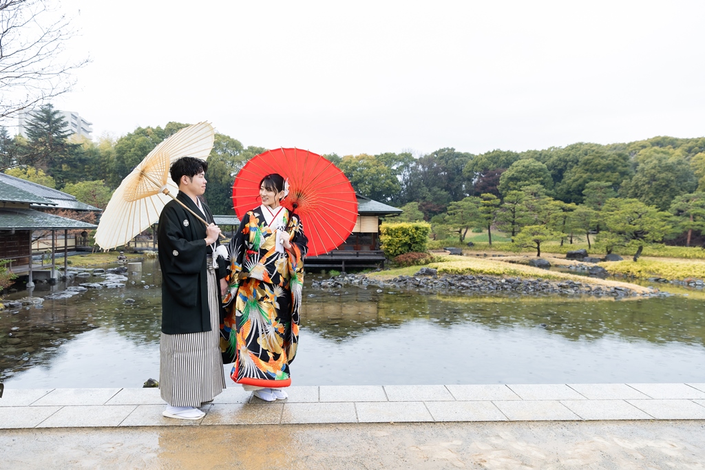 雨の日でも思い切り楽しんで撮影出来る白鳥庭園でのロケーション撮影♪