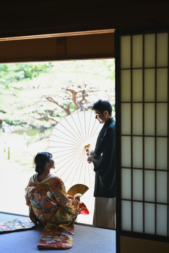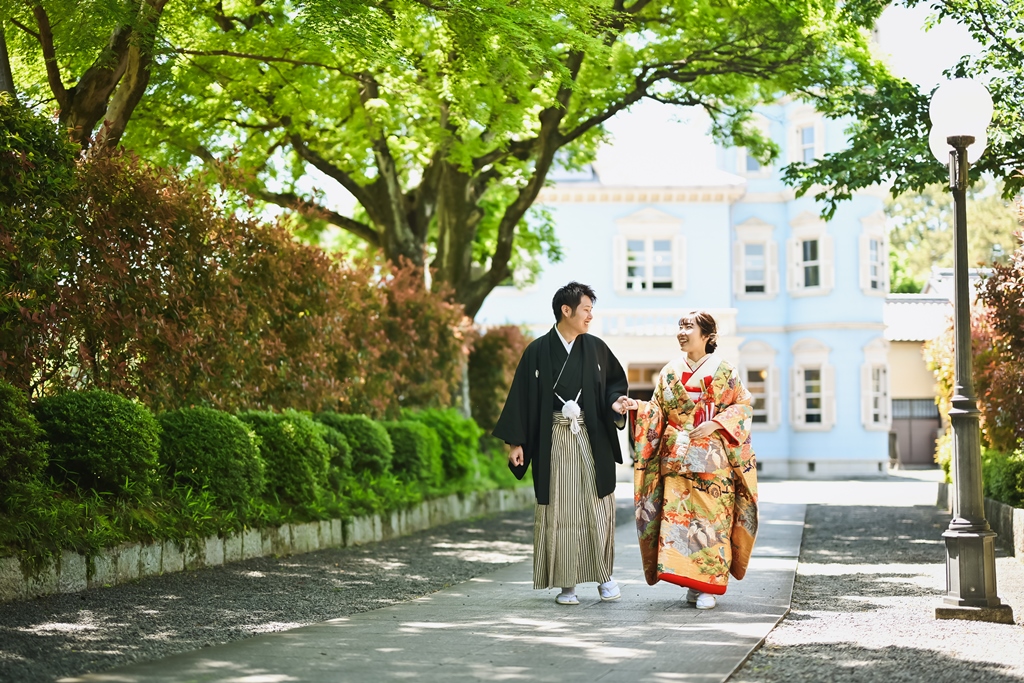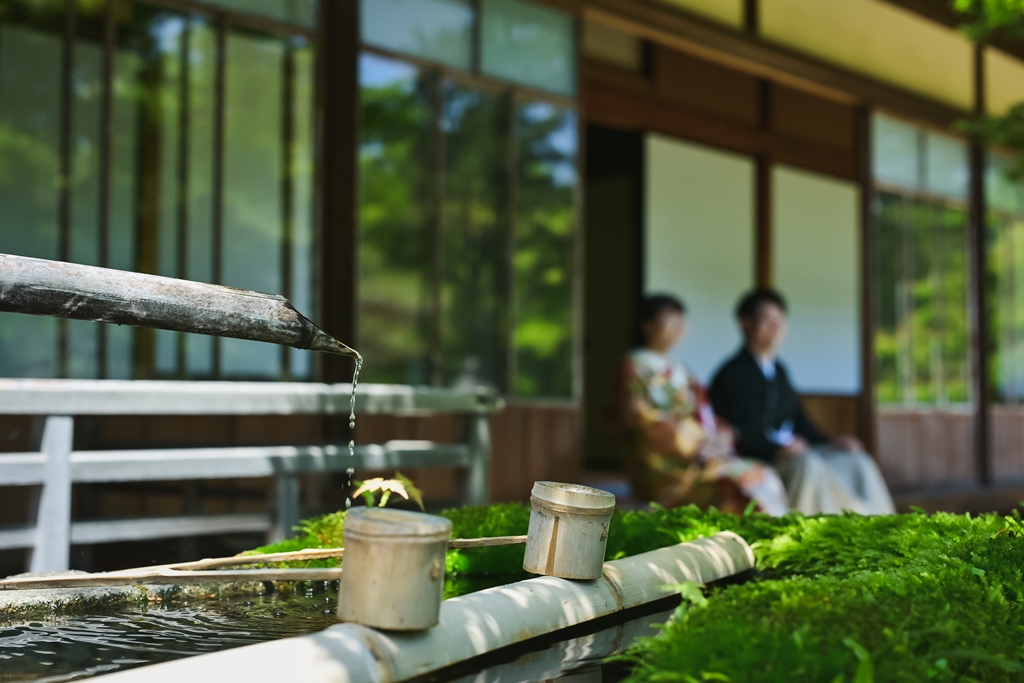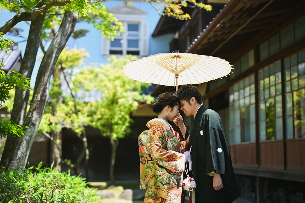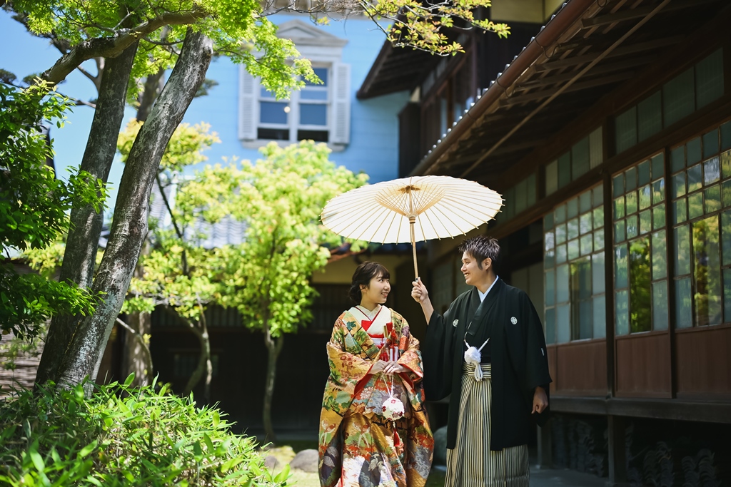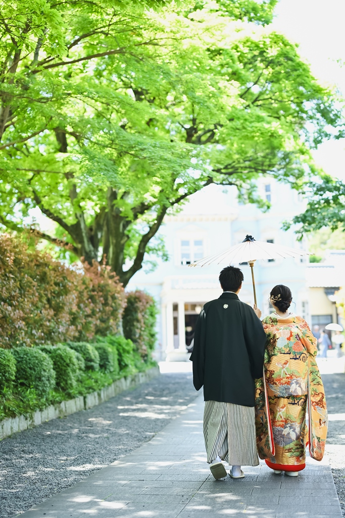 ご希望の六華苑での撮影日にはお天気にも恵まれて、キラキラした緑がとっても綺麗でしたね☆
