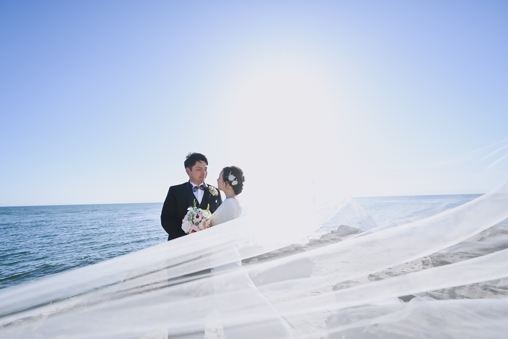 快晴の内海で憧れのビーチフォト☆ | 名古屋の前撮り&フォトウェディング【公式】WEDDING AVENUE