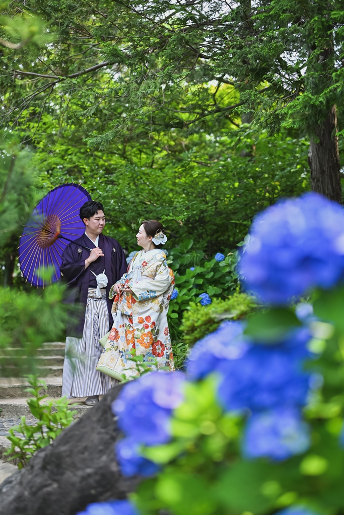 お天気にも恵まれ、緑も紫陽花もとっても綺麗で、最高のロケーション♪