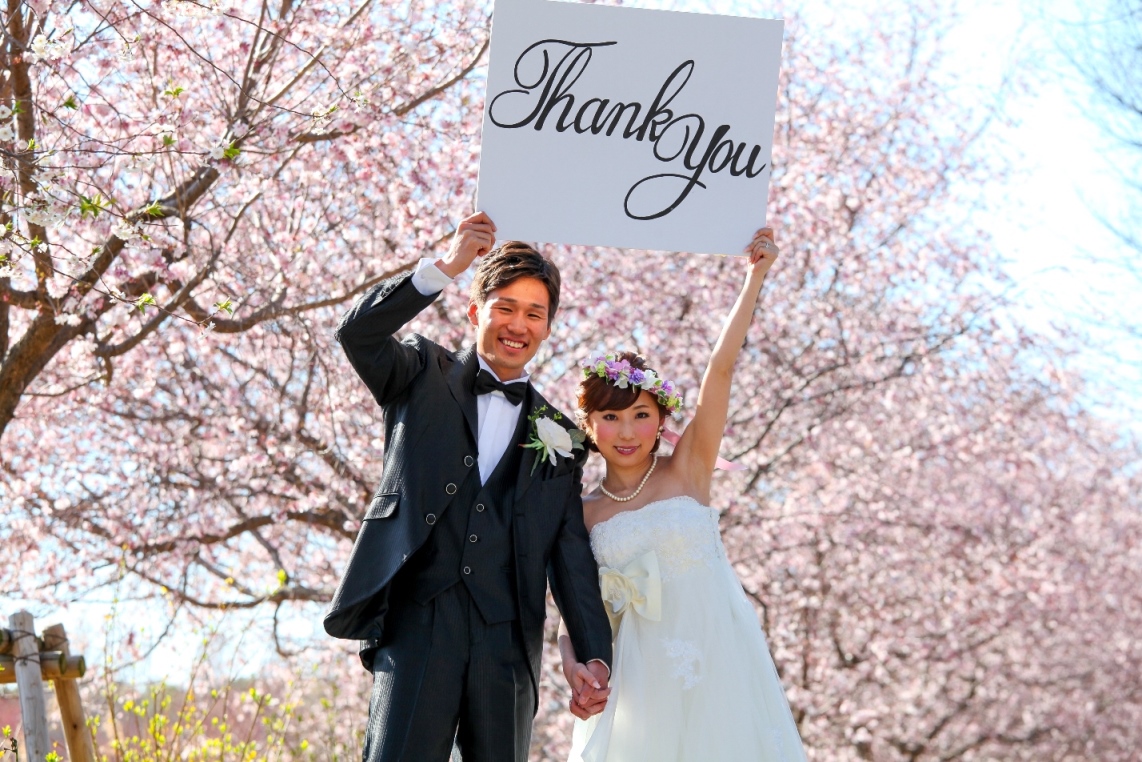 おふたりのナチュラルな表情が、さくらの背景に溶け込んでいて、本当にステキです。