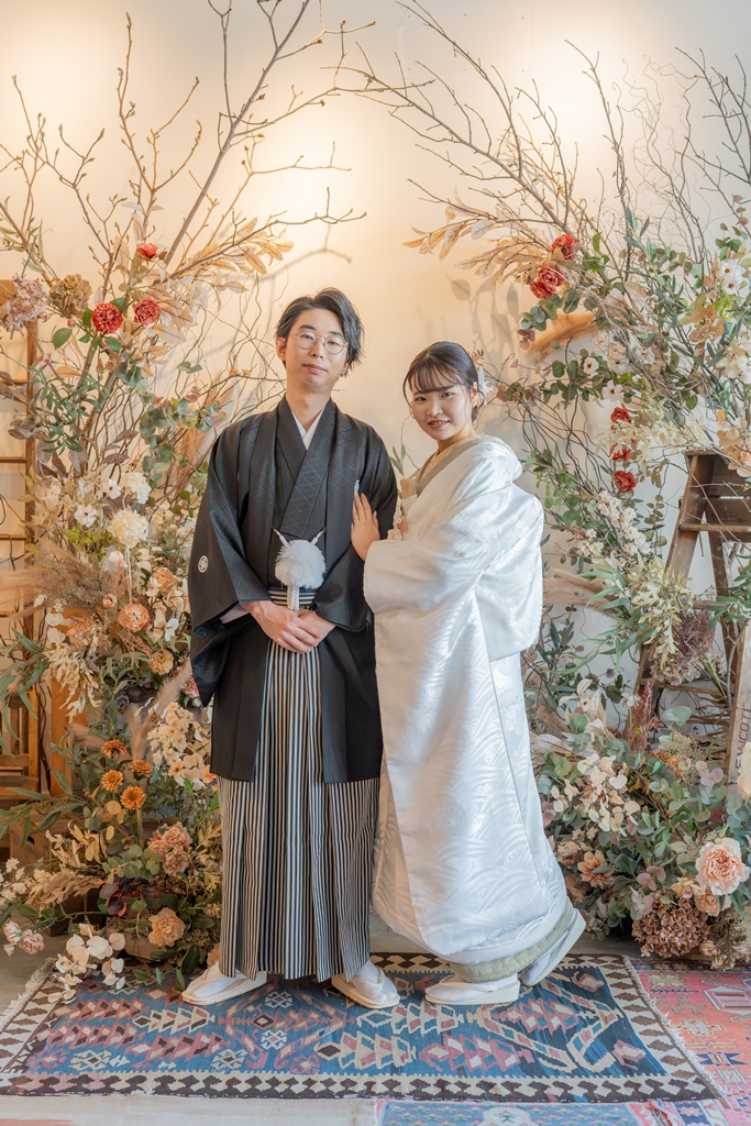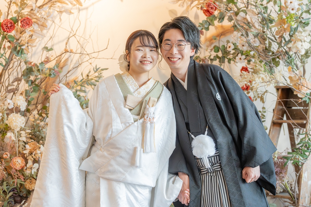 良かった点を教えてください - 始めはどうしたら良いかわからず2人とも緊張をしたいたのですが、カメラマンさんの撮影中の声掛けがとても面白く次第にリラックスして撮影できました。和装は中々着る機会がないので、動くのも一苦労でしたがスタッフの方が移動の時の注意点等を教えて頂けたので後半はスムーズに動くことができました。また、和服に合う小物もスタジオに揃っていたので特に準備せずとも様々な写真が撮れたと思います。
