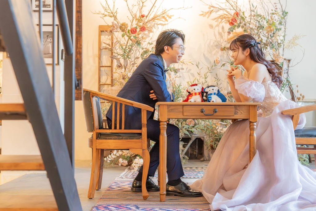 アトリエスタジオでの洋装撮影、改めて本当にお疲れさまでした!!和装撮影の後に行われた洋装撮影ということもあり、お2人の緊張も解れた楽しい撮影になりましたね♡