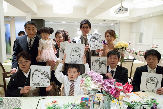 あっという間に過ぎた感じがした。 余興などを依頼していなかったため、時間が余るかもと 思っていたが、写真を撮ったりしたフリーの時間が充実していて良かった。 似顔絵が好評だった。